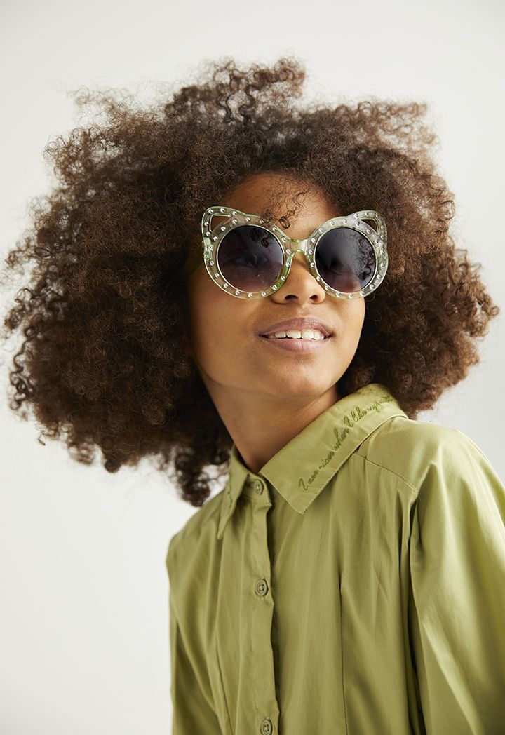 This pair of glasses is for the girls who prefer a more modern and edgy look, featuring crystal embellished lenses for a more sparkly look.
