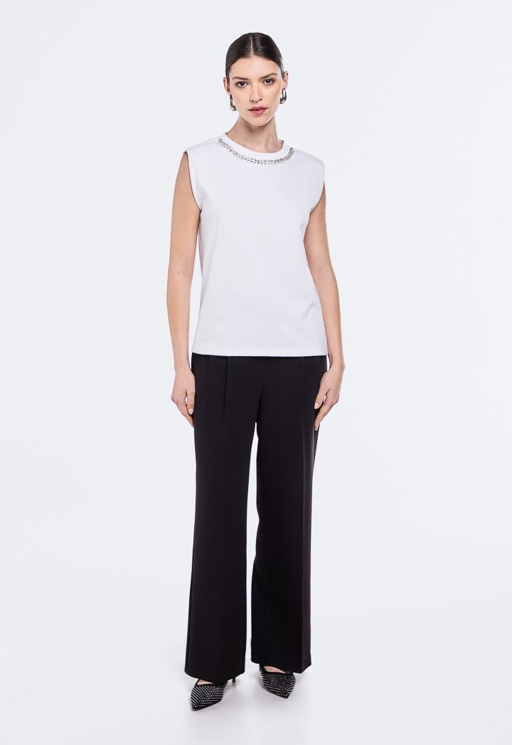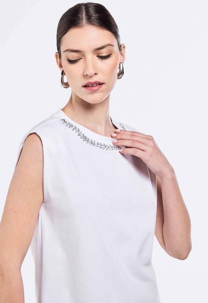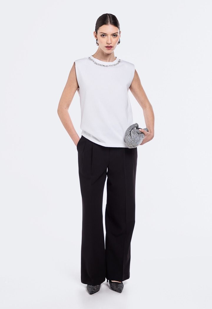 A must-have in everyone's wardrobe. Designed with a crystal embellished and sleeveless cut. A classic in everyone's wardrobe.