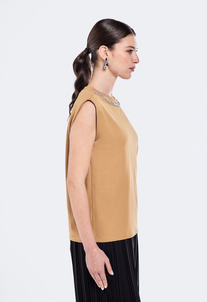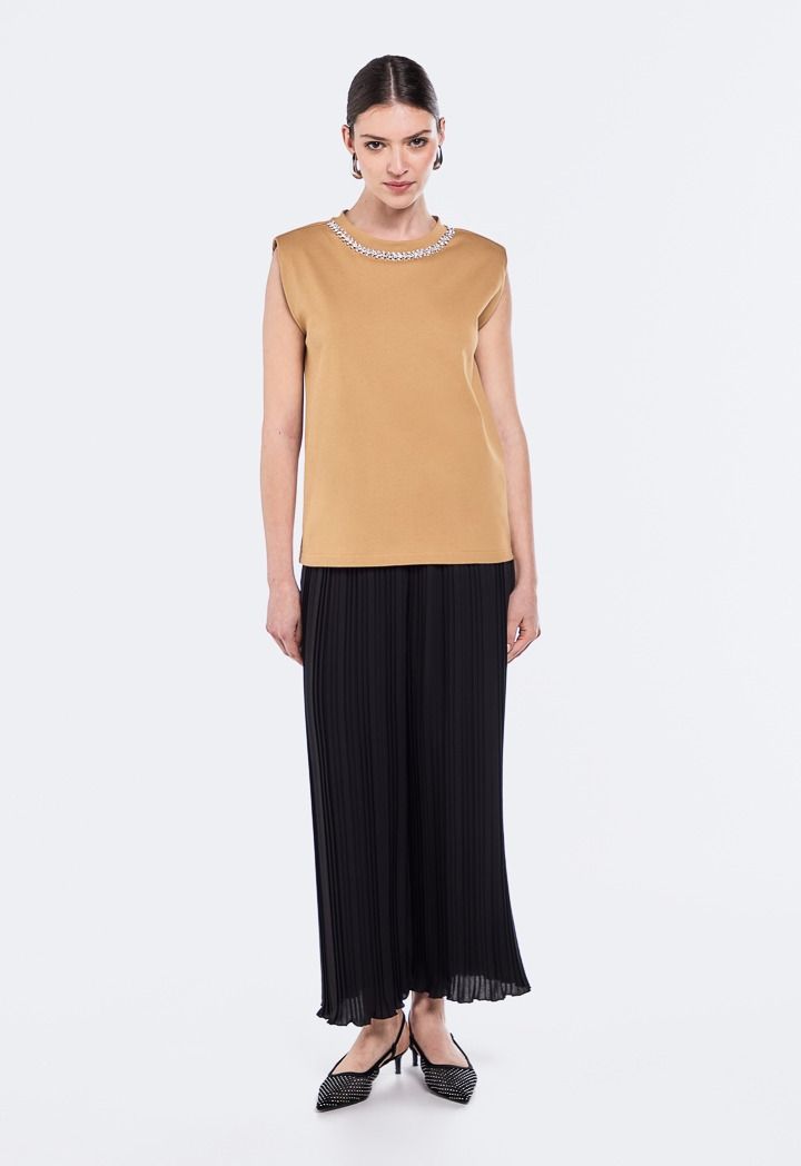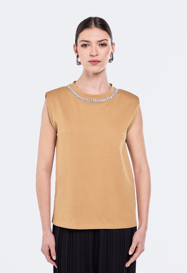 A must-have in everyone's wardrobe. Designed with a crystal embellished and sleeveless cut. A classic in everyone's wardrobe.