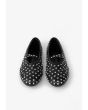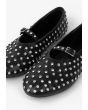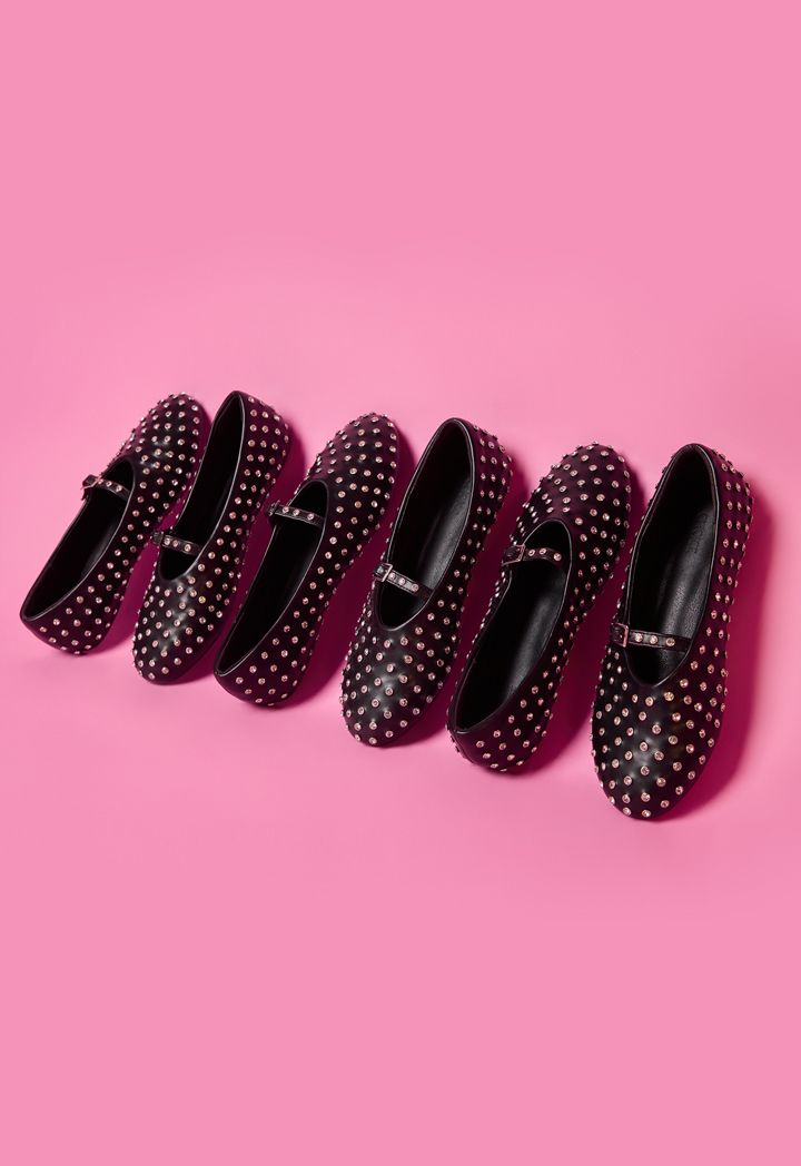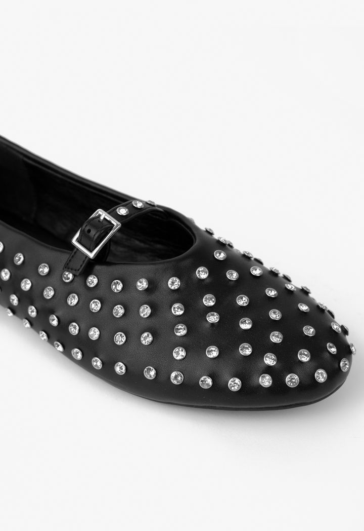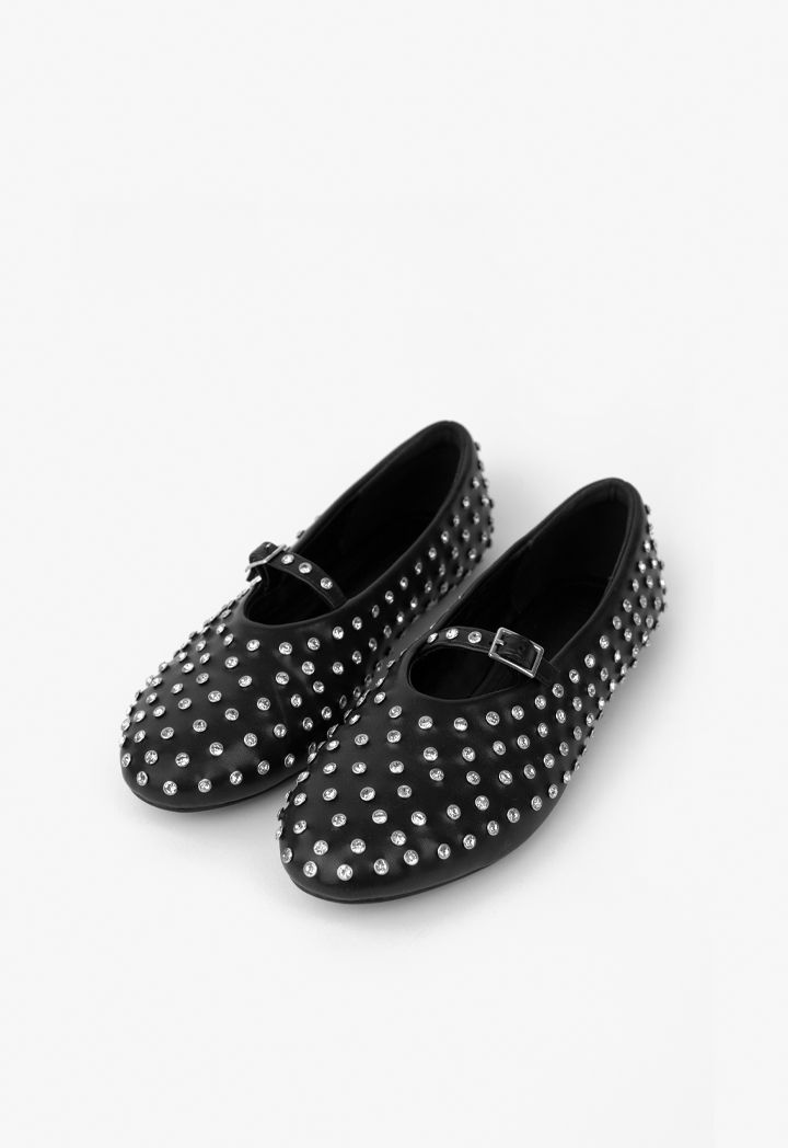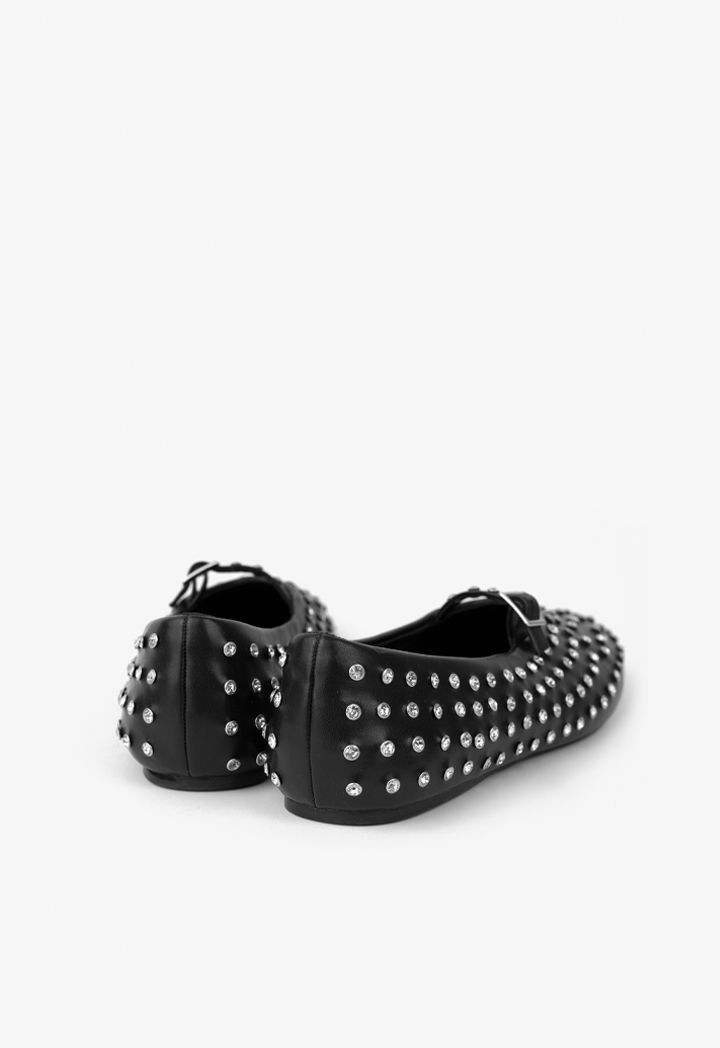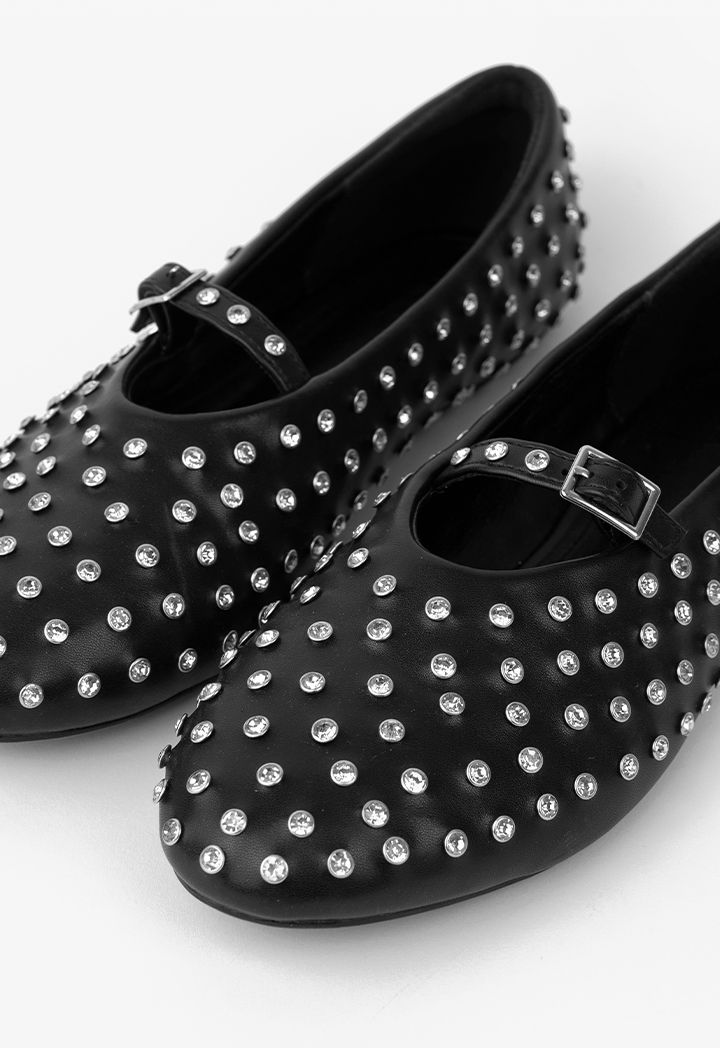 These ballet flats from are embellished with silver-ringed crystals, the black design is made from PU leather with buckled straps.