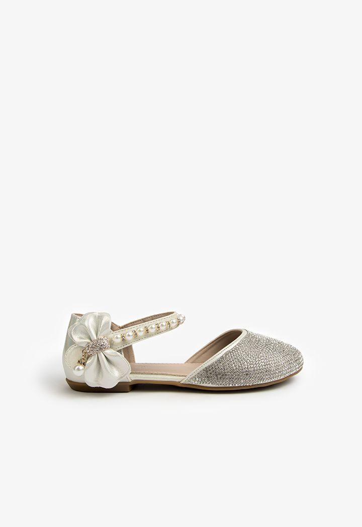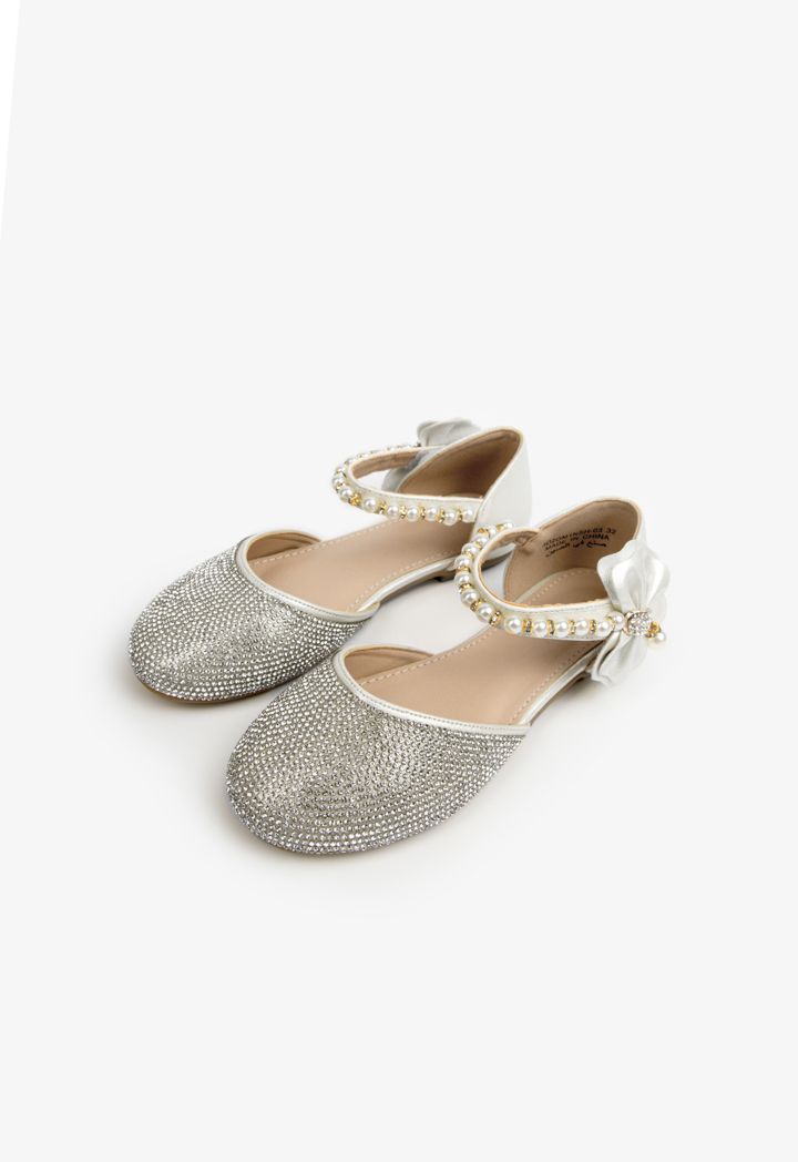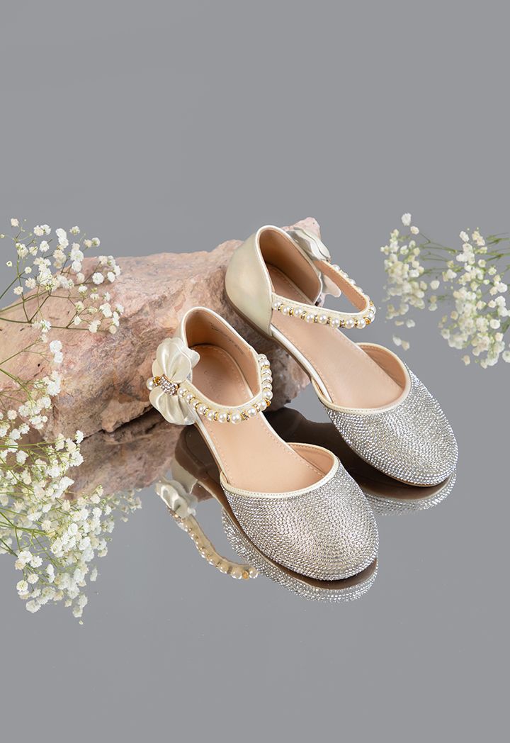 Girls' Crystal & Faux Pearls Embellished Shoes | Riva Fashion