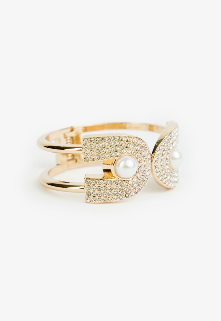 Crystal & Faux Pearls Embellished Wide Bracelet |