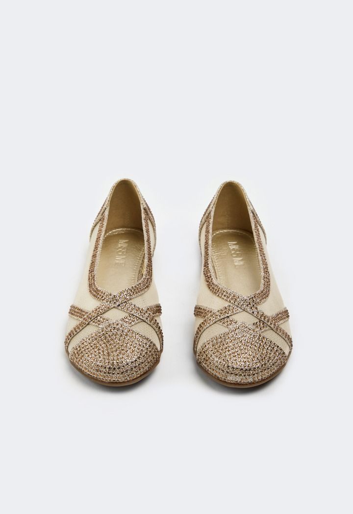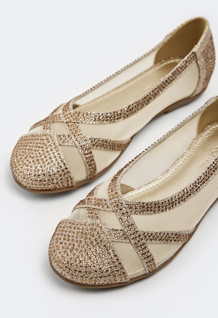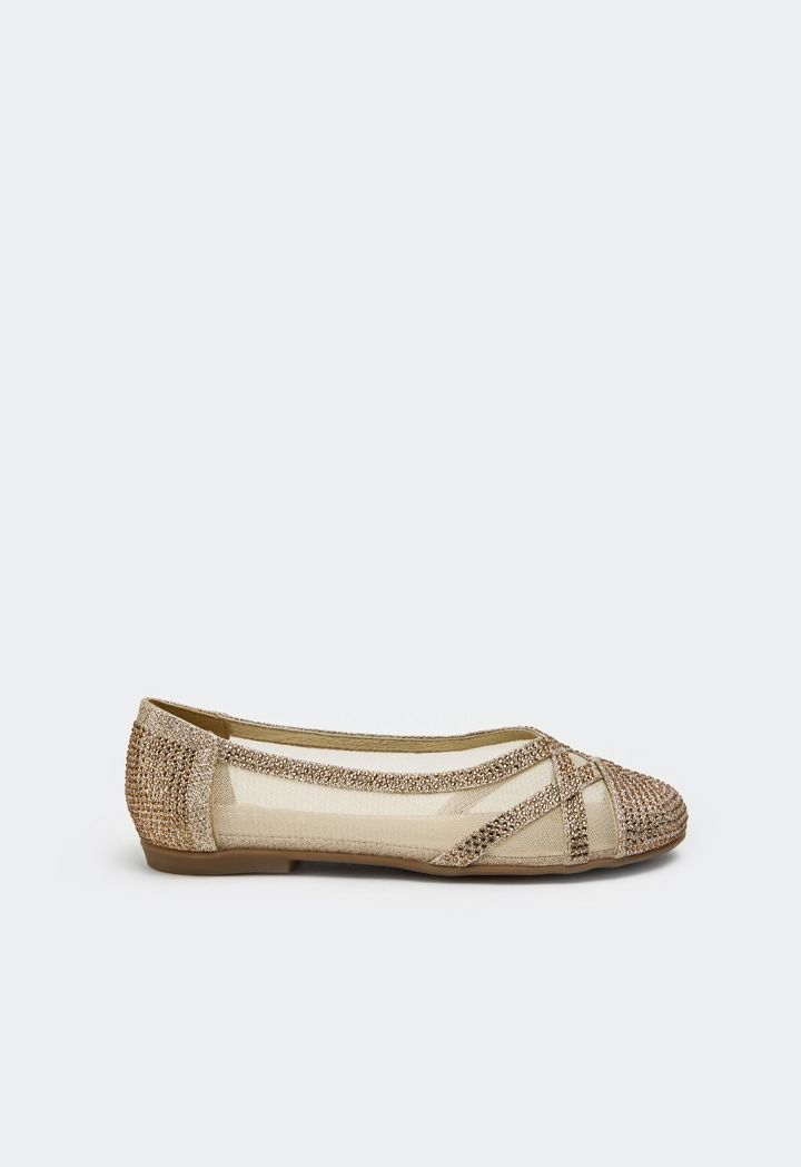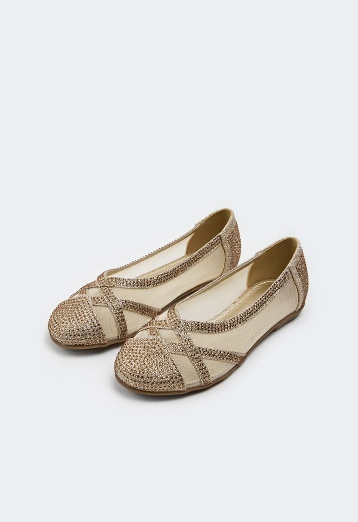 Amplify your daughters collection of shoes with this pair of crystal mesh flat ballerinas.