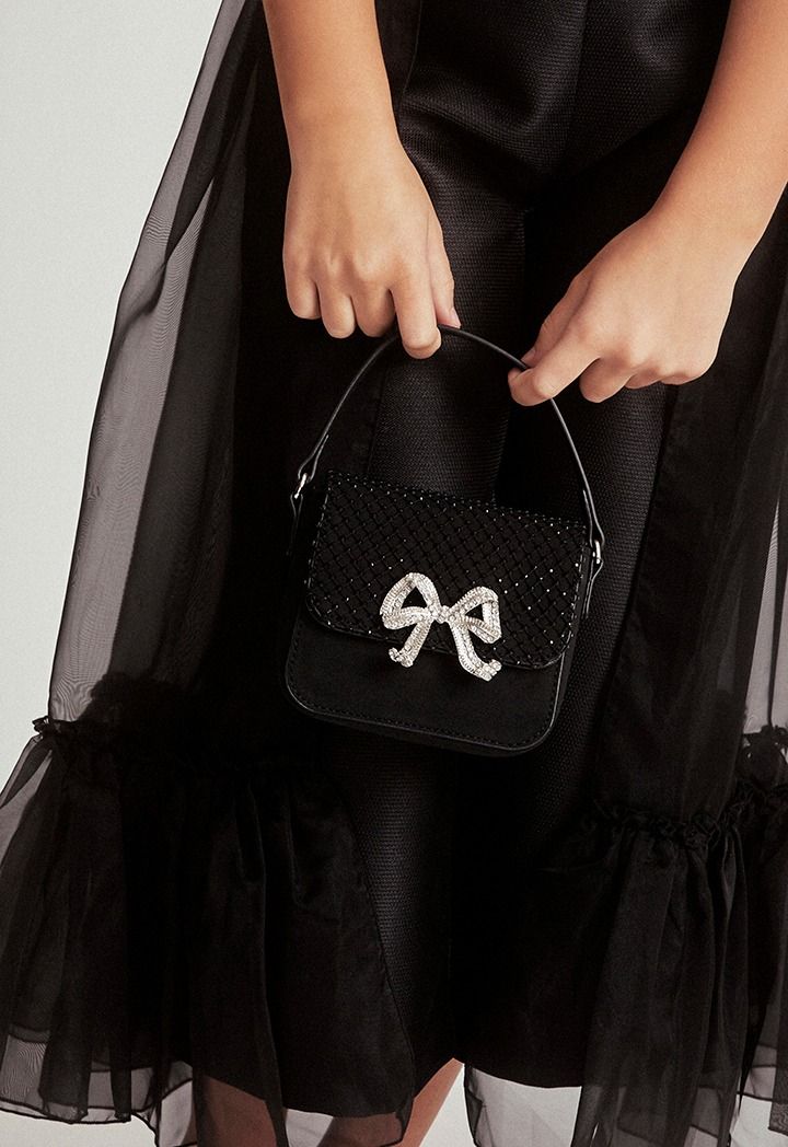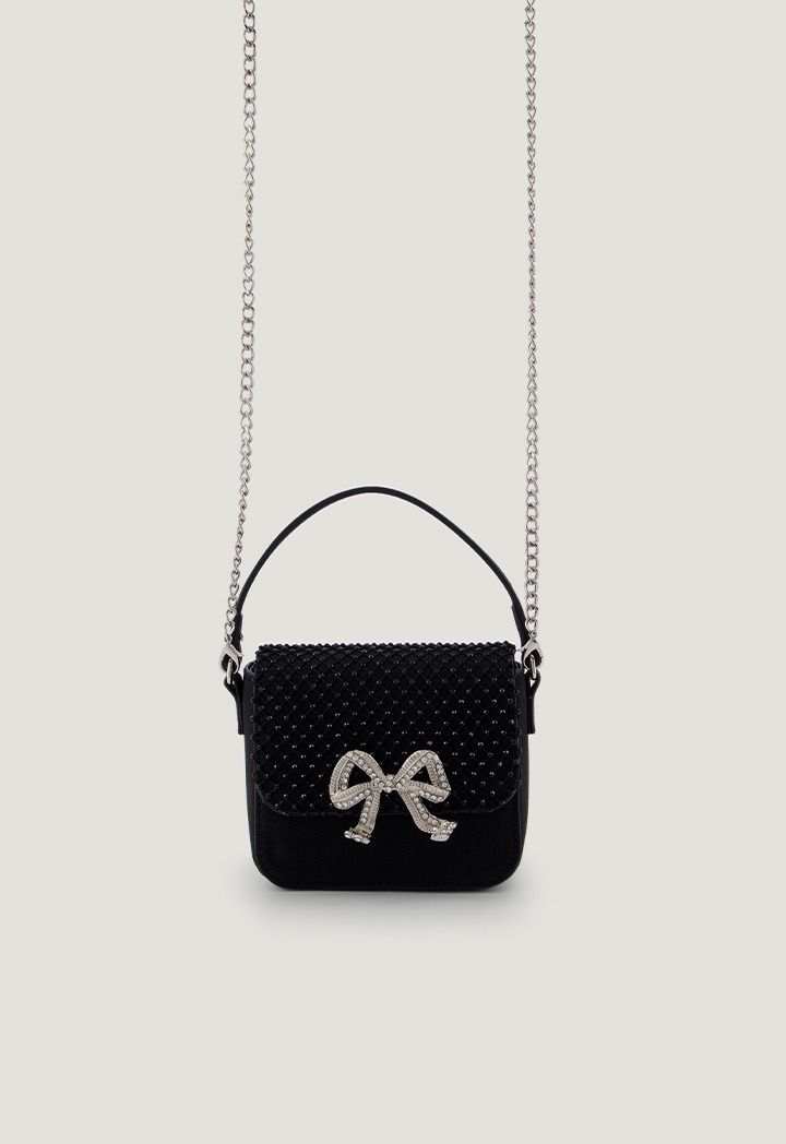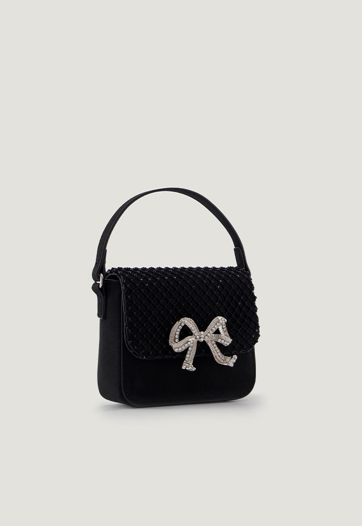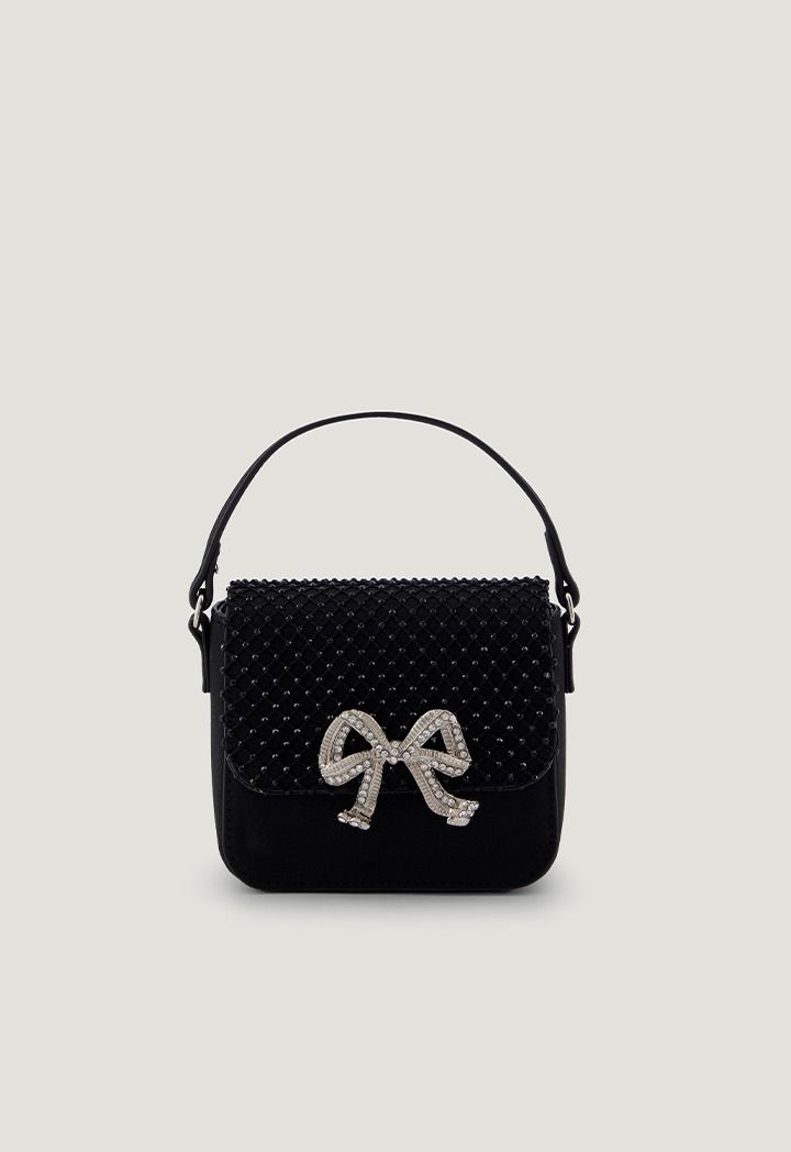 Design : PU Leather, Top Handle, Bow, Crystal, Mesh, Shoulder Chain