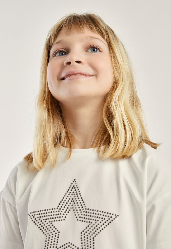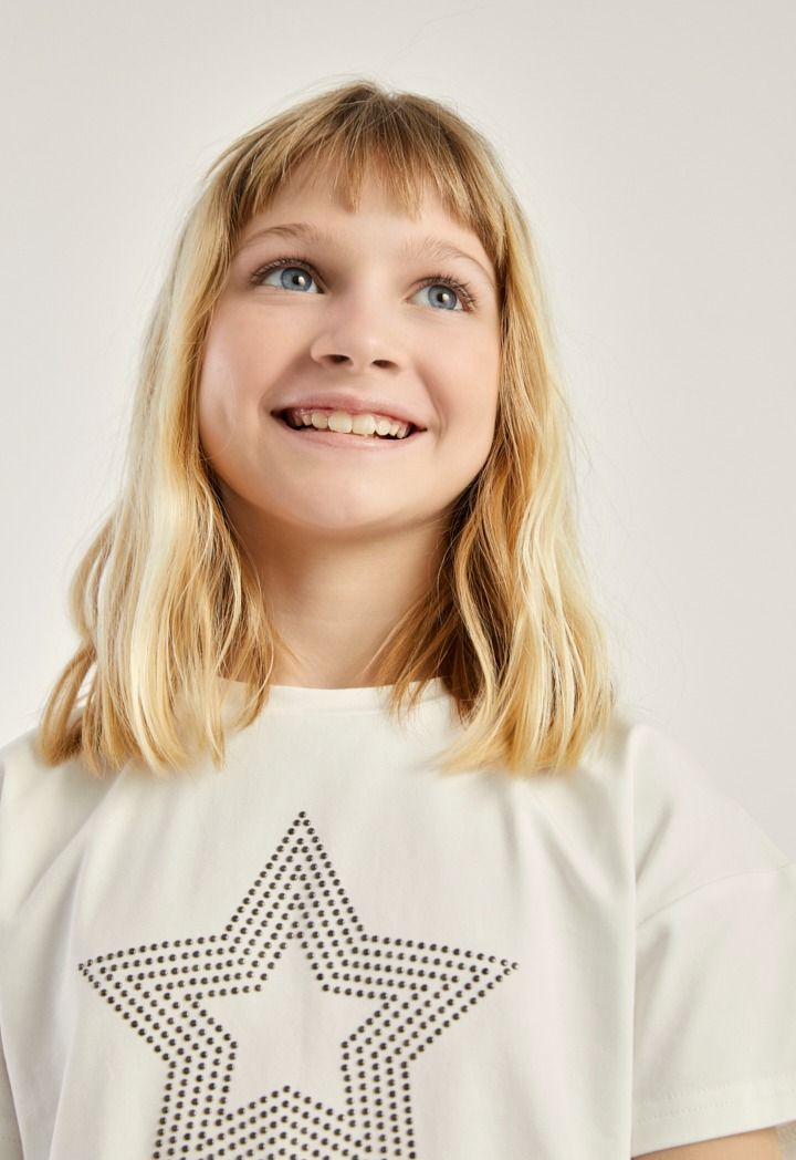 A sparkling t shirt for your daughter, featuring a knitted crystal star design.