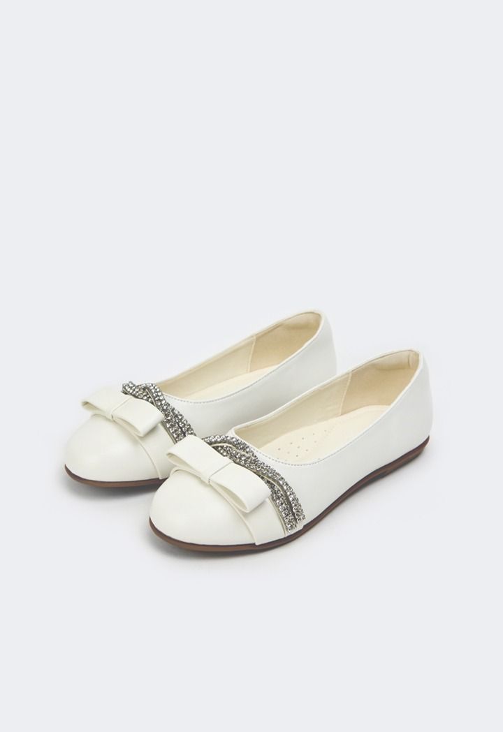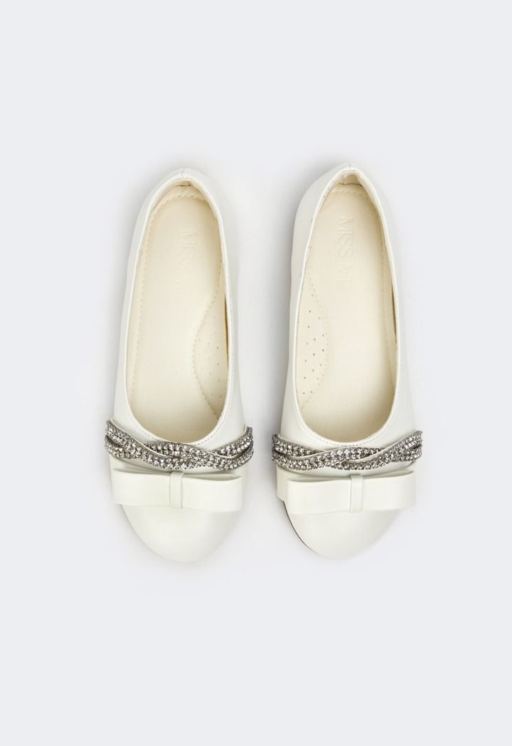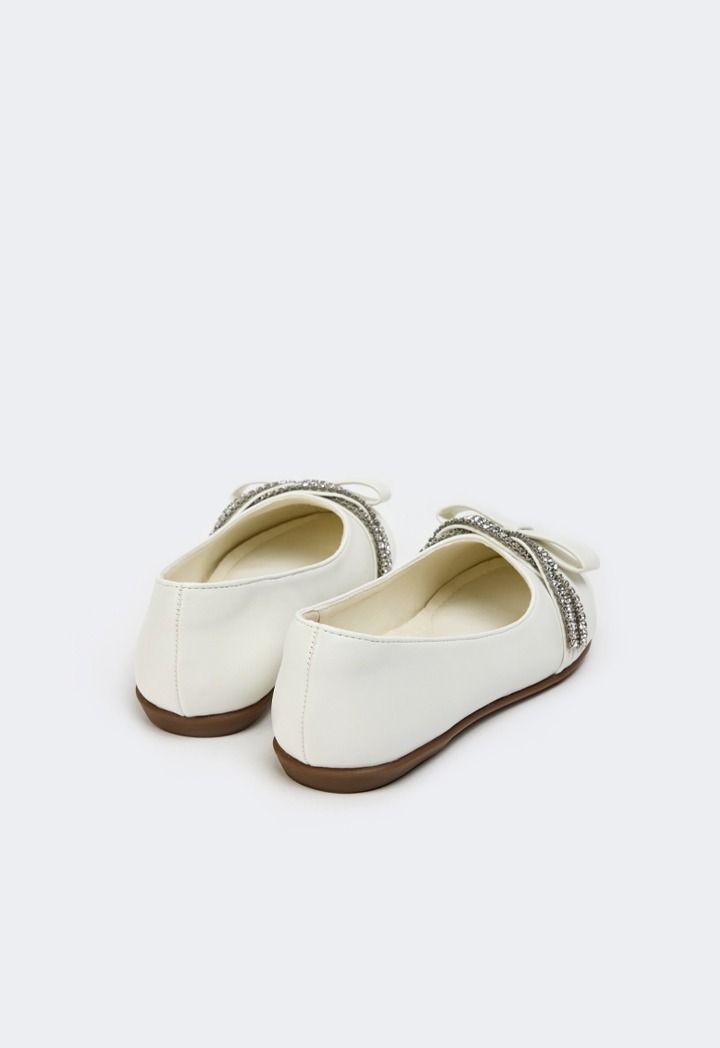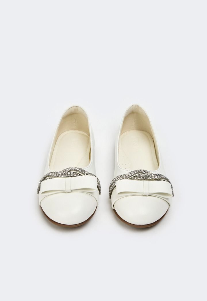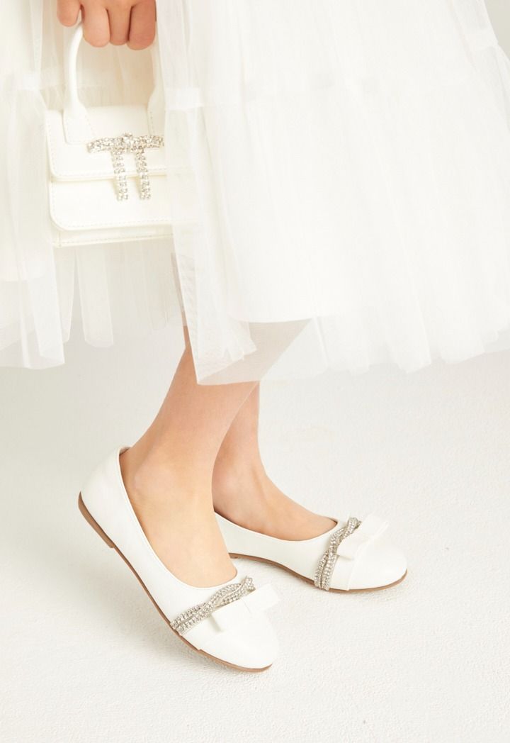 An extravagant yet comfortable pair of flat ballerinas, featuring a luxurious crystal strap bow design.