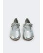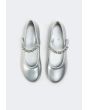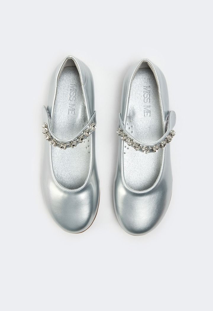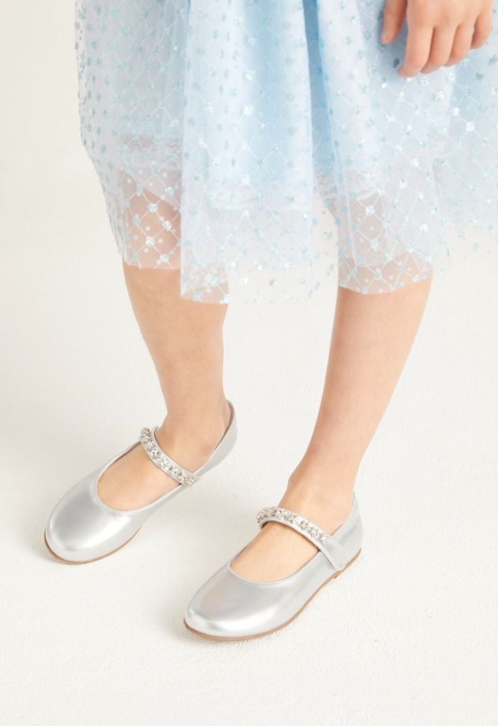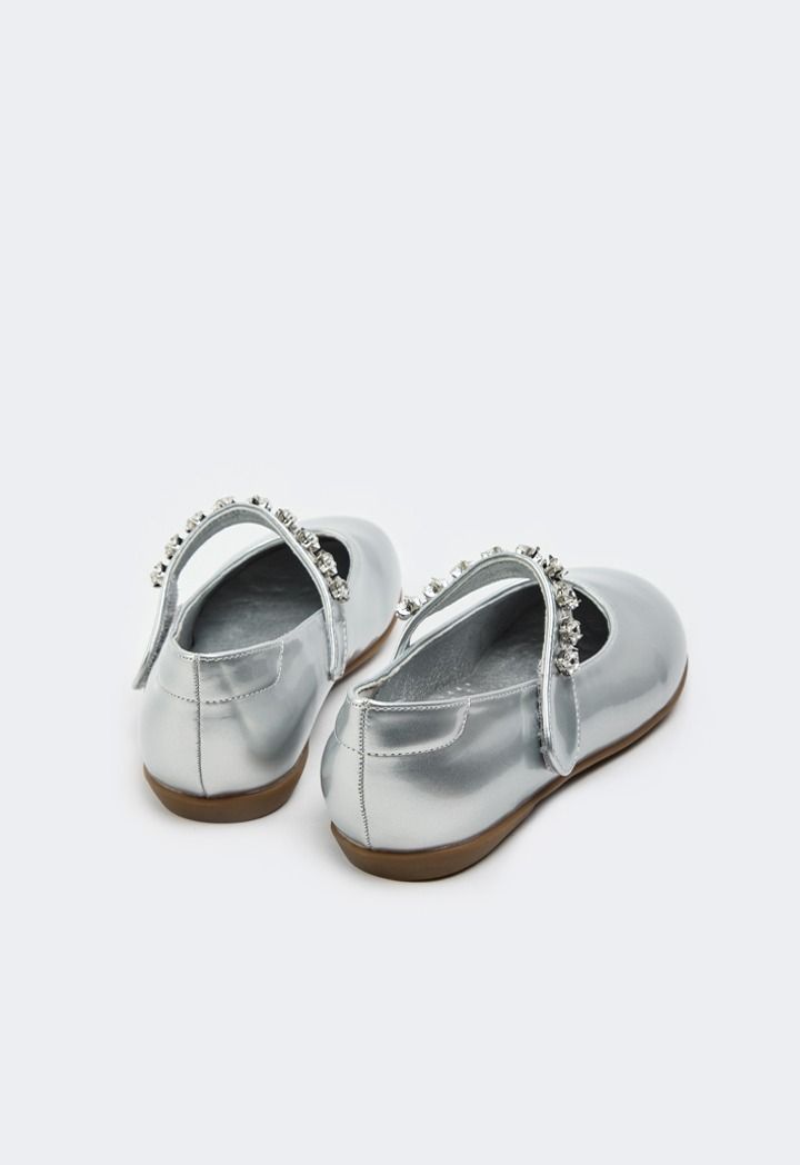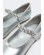 A luxurious pair of flat shoes that feature a crystal embellished strap design.