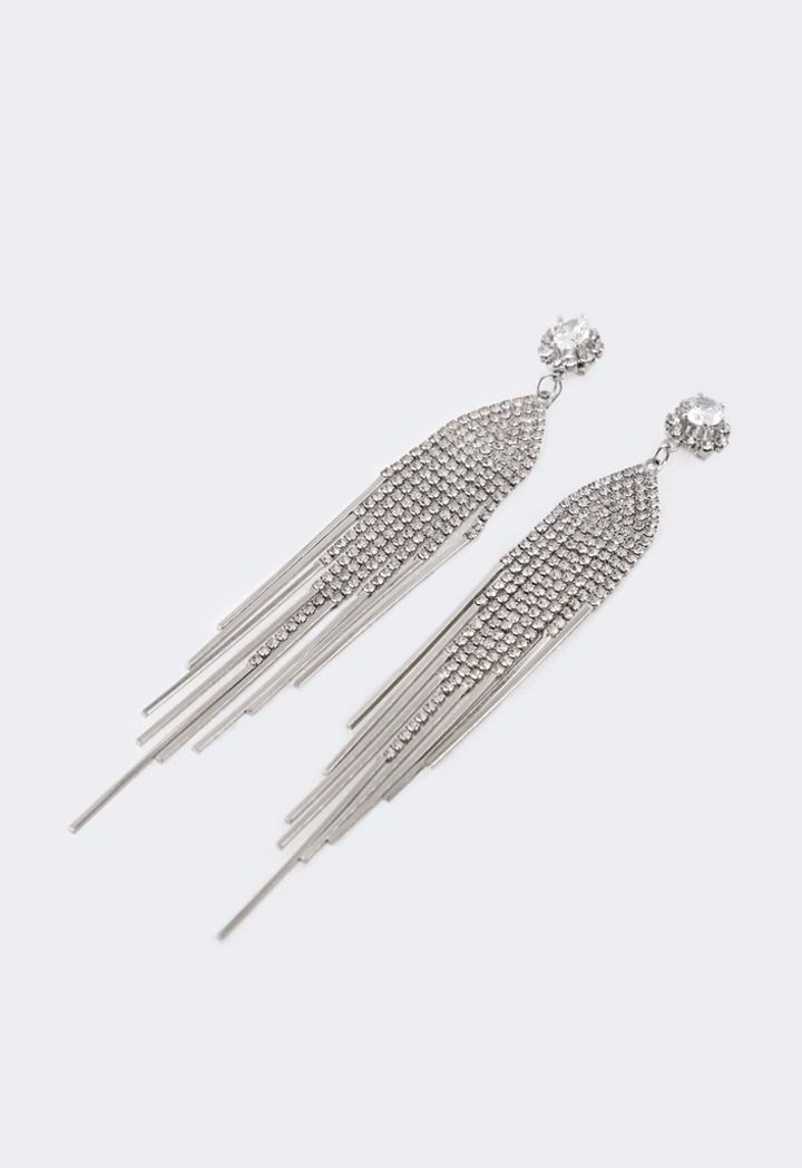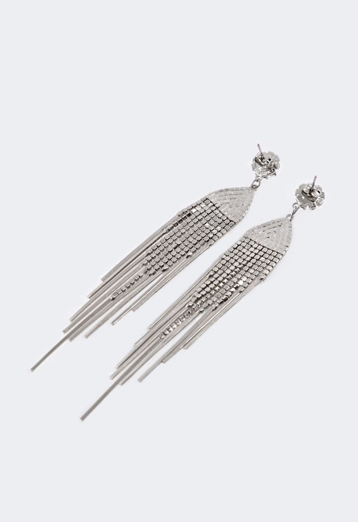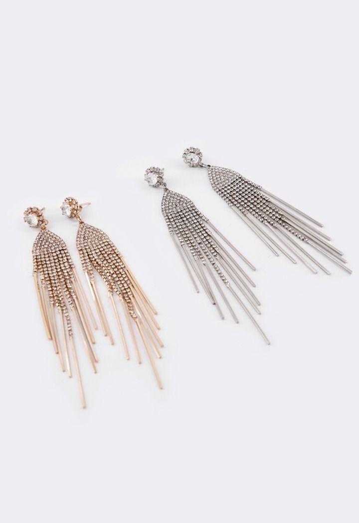 Invest in this pair of earrings that feature a crystal embellished tussles design and pin closure.
