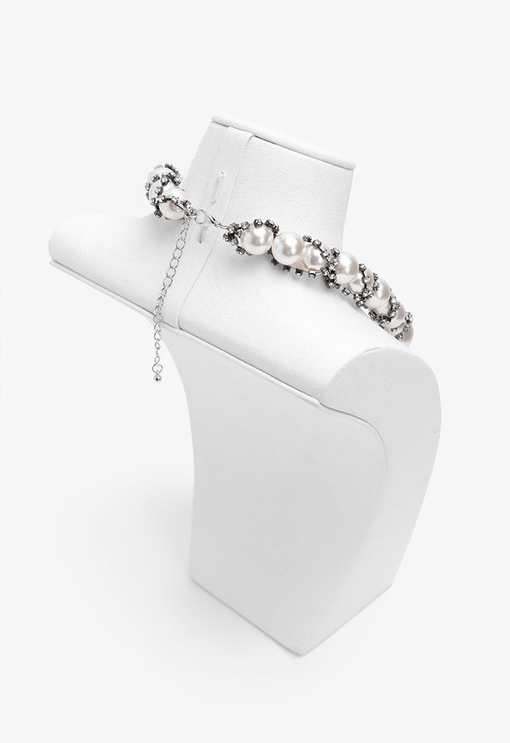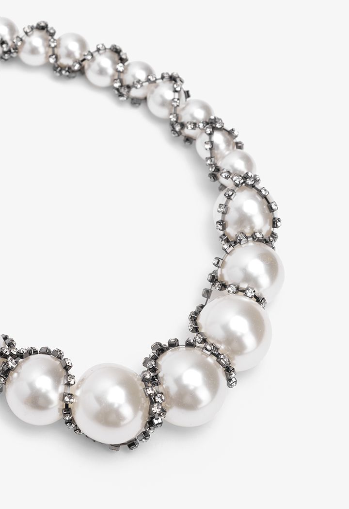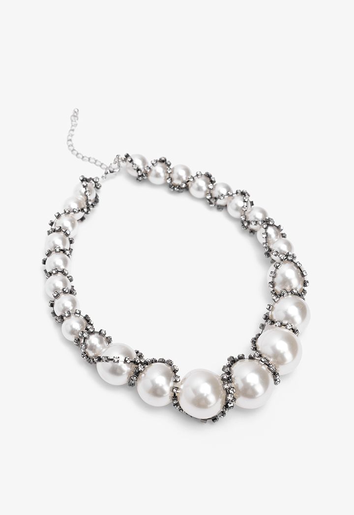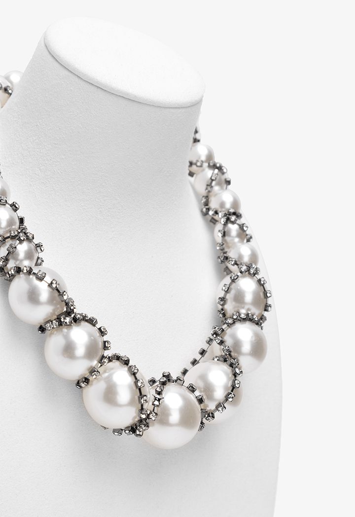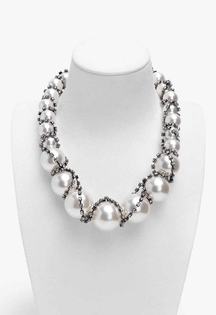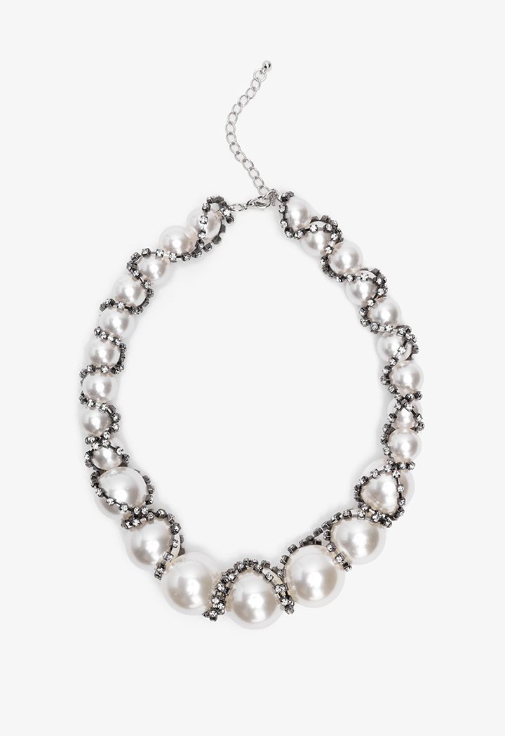Guarantee uniqueness with this necklace that features a crystal wrapped faux pearls design.