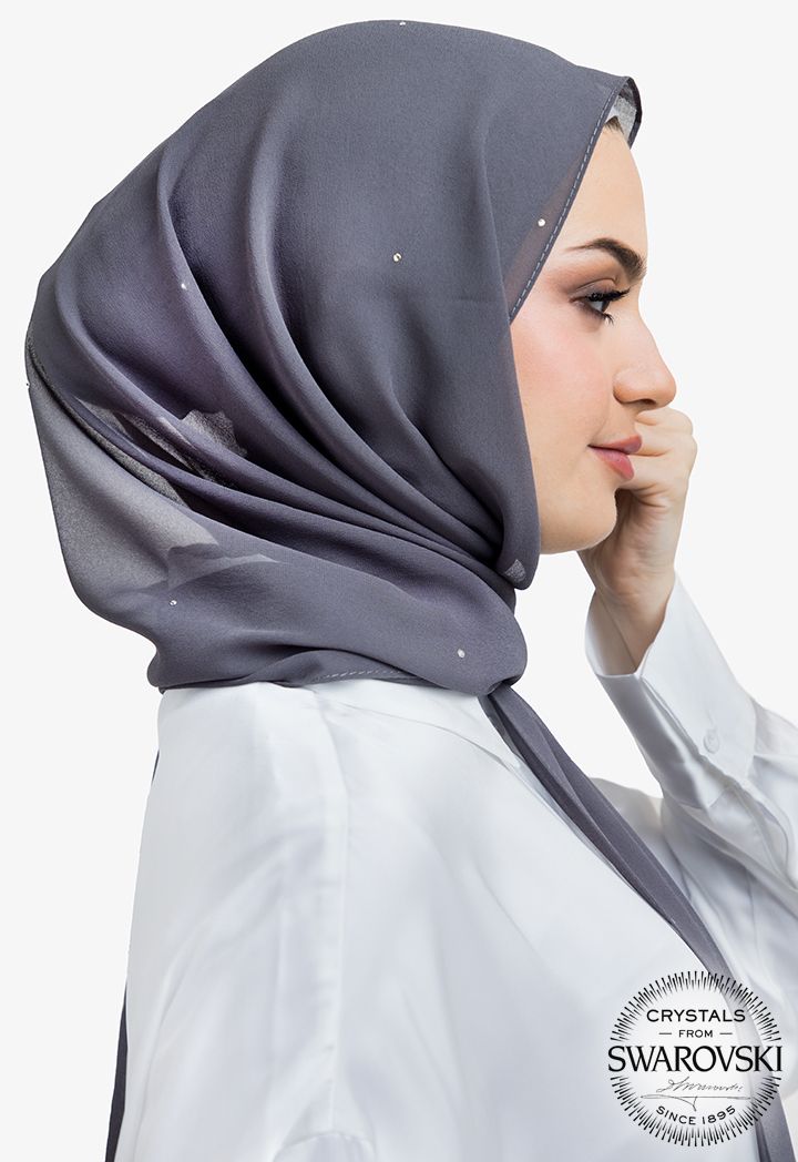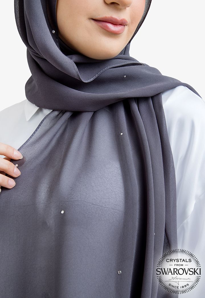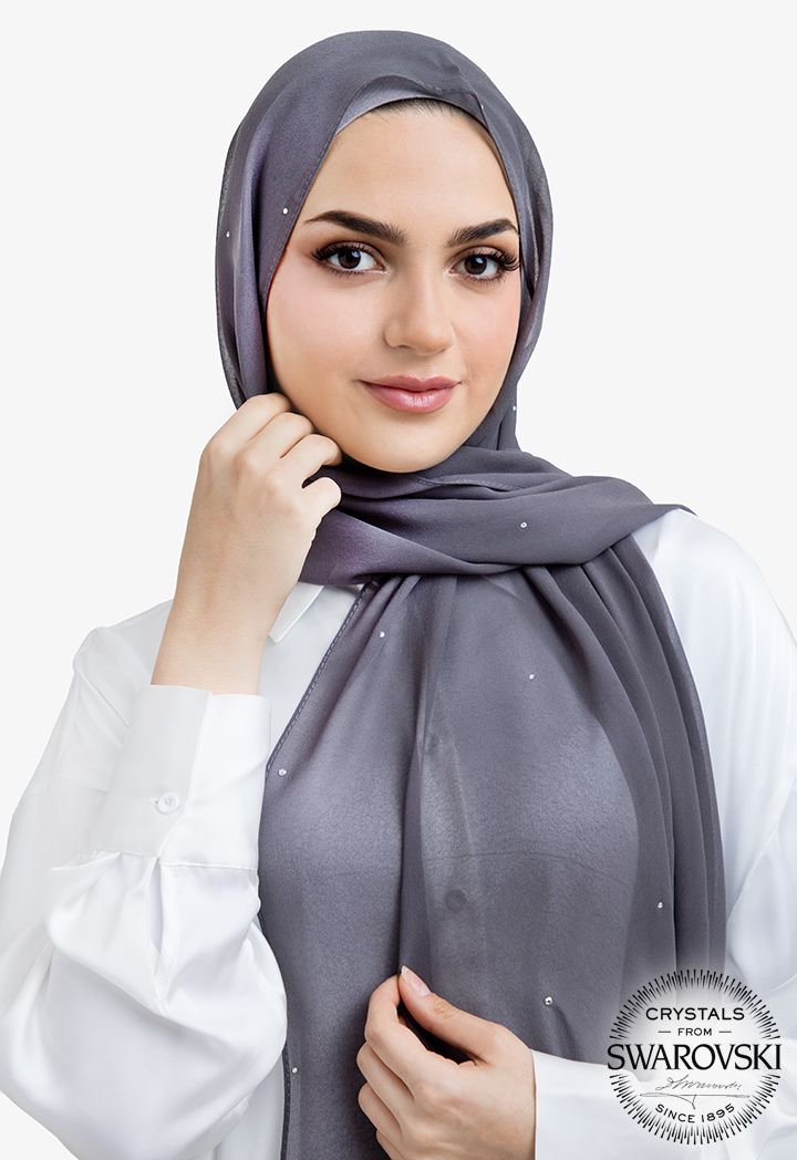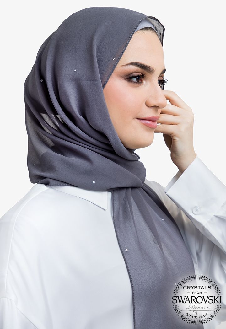 The perfect mix of modesty and sparkle is in this hijab, featuring a crystal embellished design with a solid fabric.
