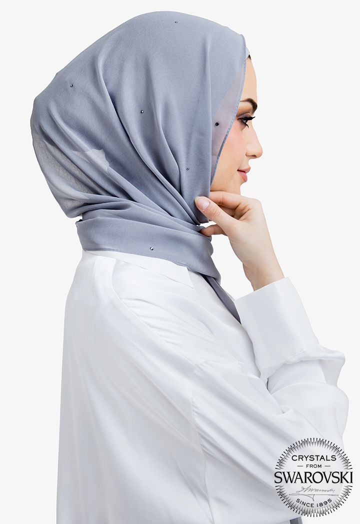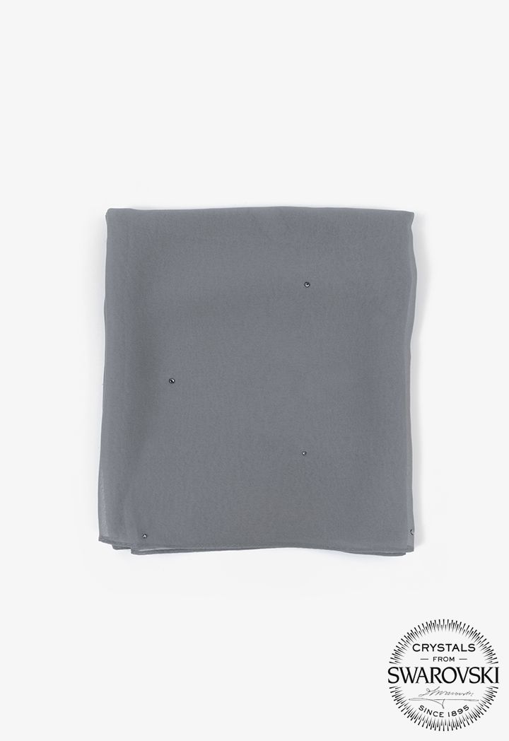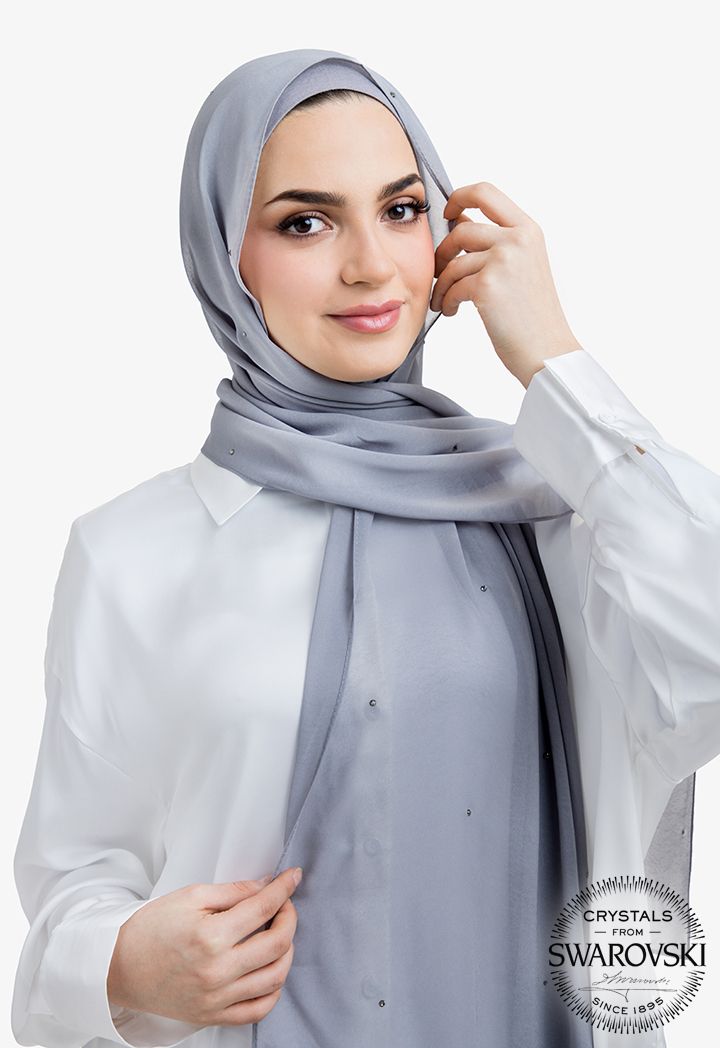 The perfect mix of modesty and sparkle is in this hijab, featuring a crystal embellished design with a solid fabric.