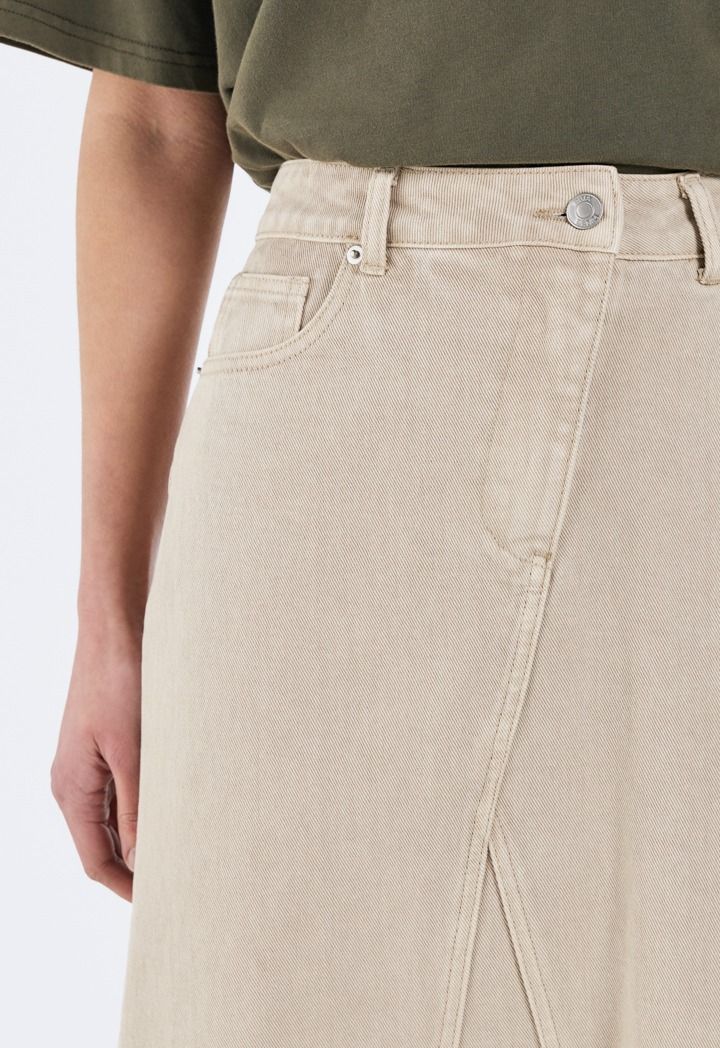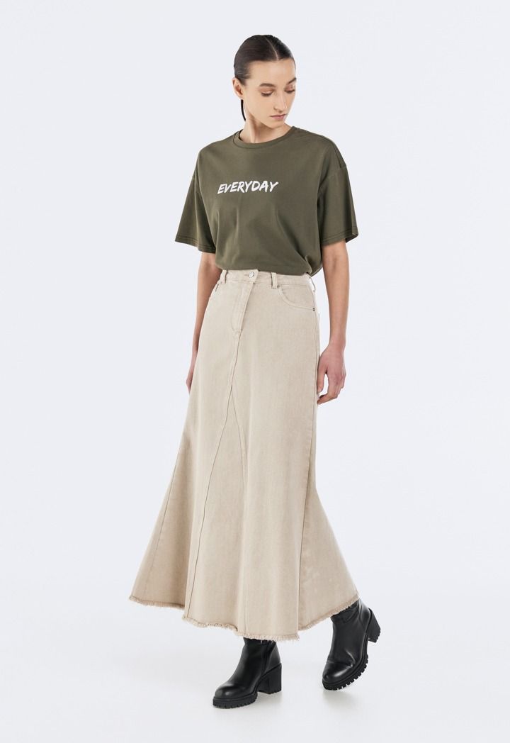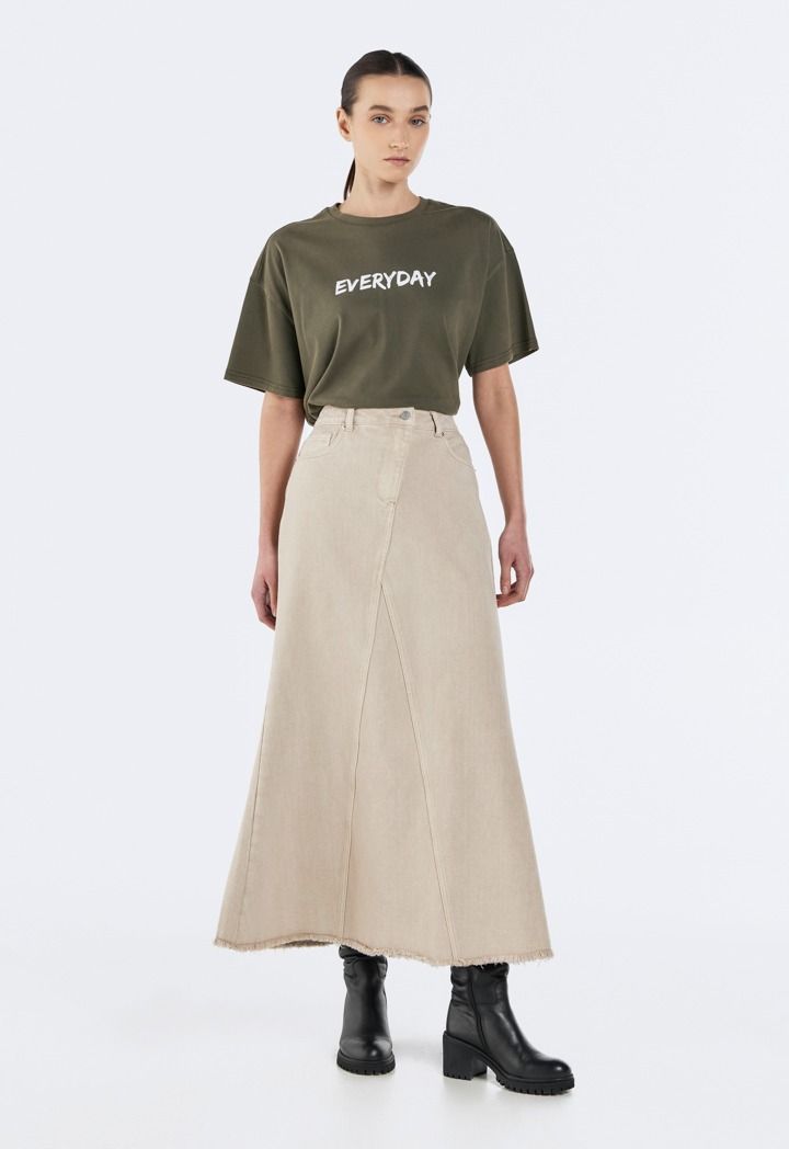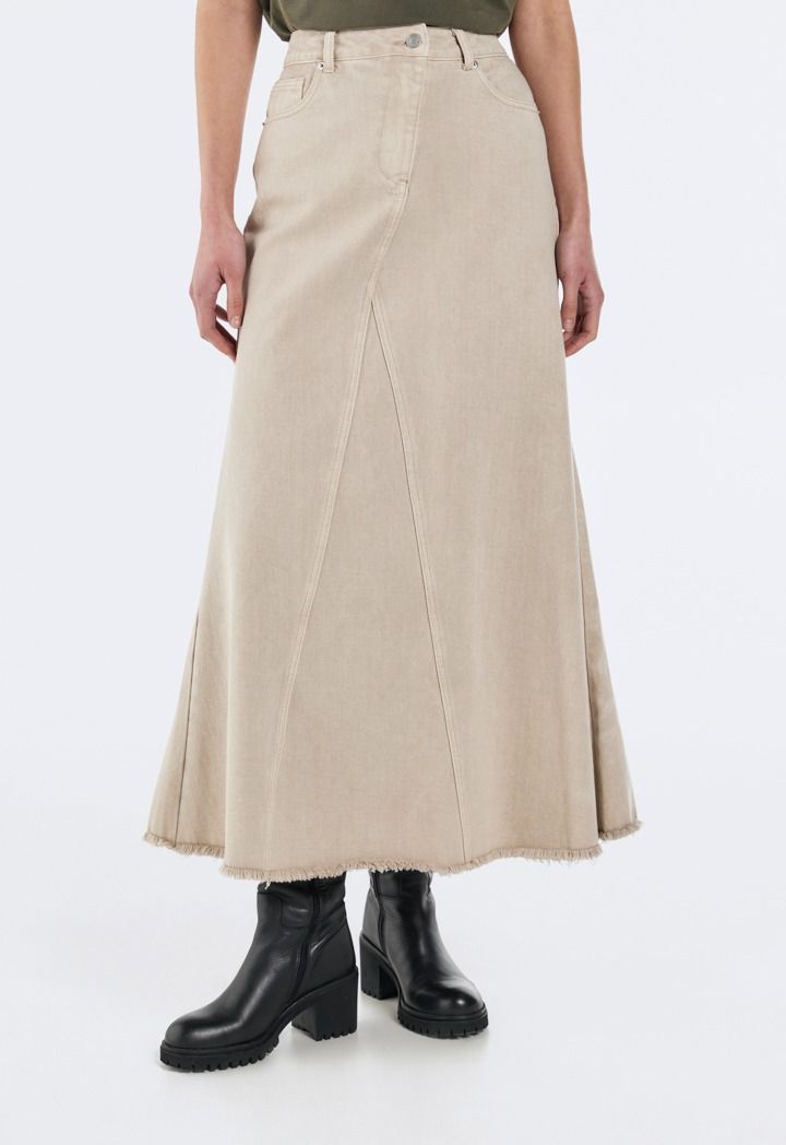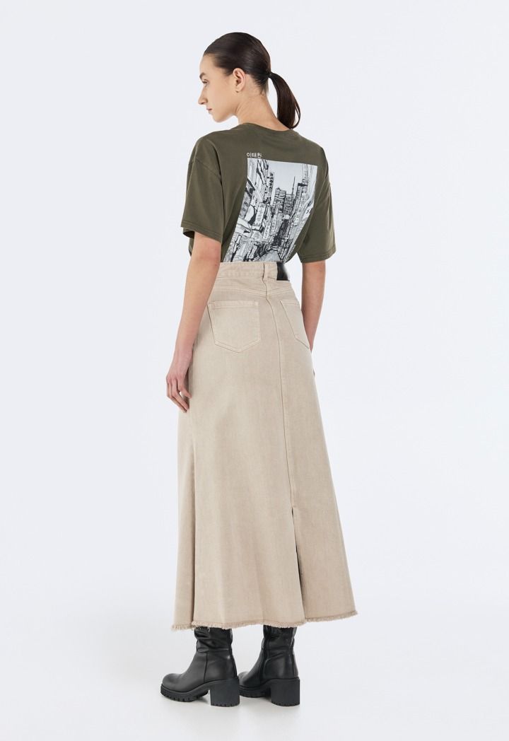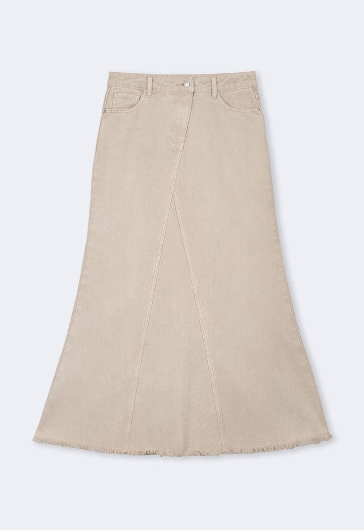 Design: Solid, Denim, A Line, Frayed Hem, Side & Back Pockets, Back Slit
