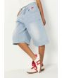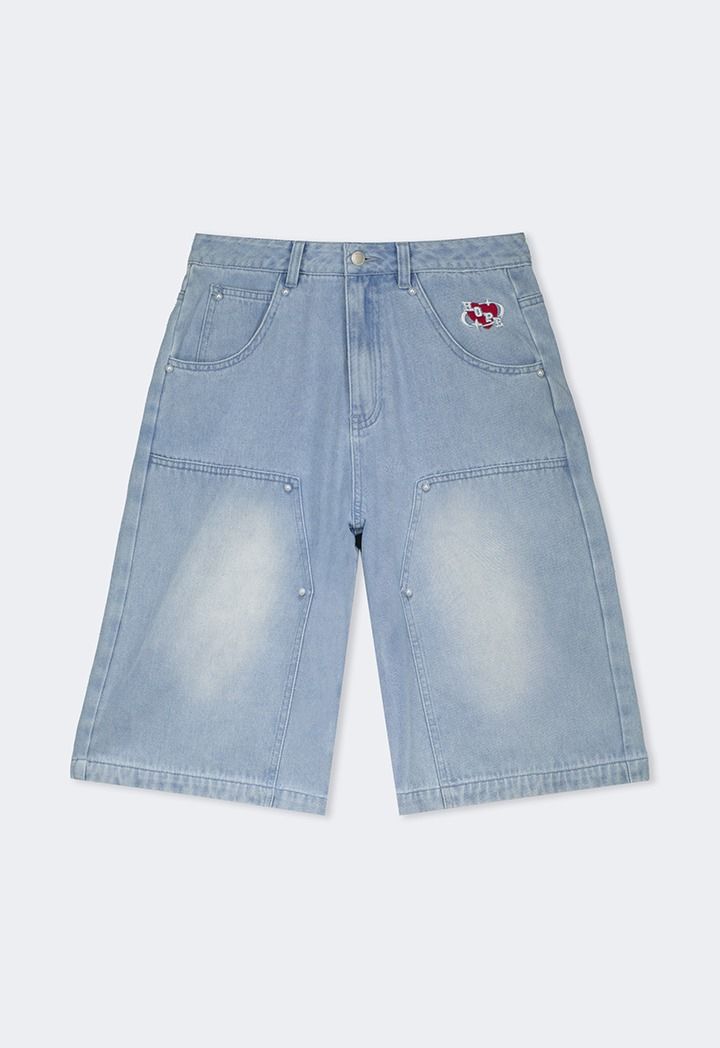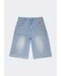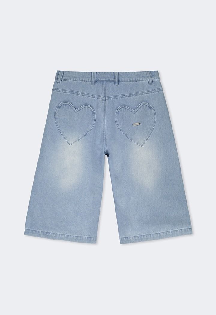 Elegant with a touch of luxury – a denim Bermuda shorts with wide legs adorned with pearls for a chic and sophisticated look