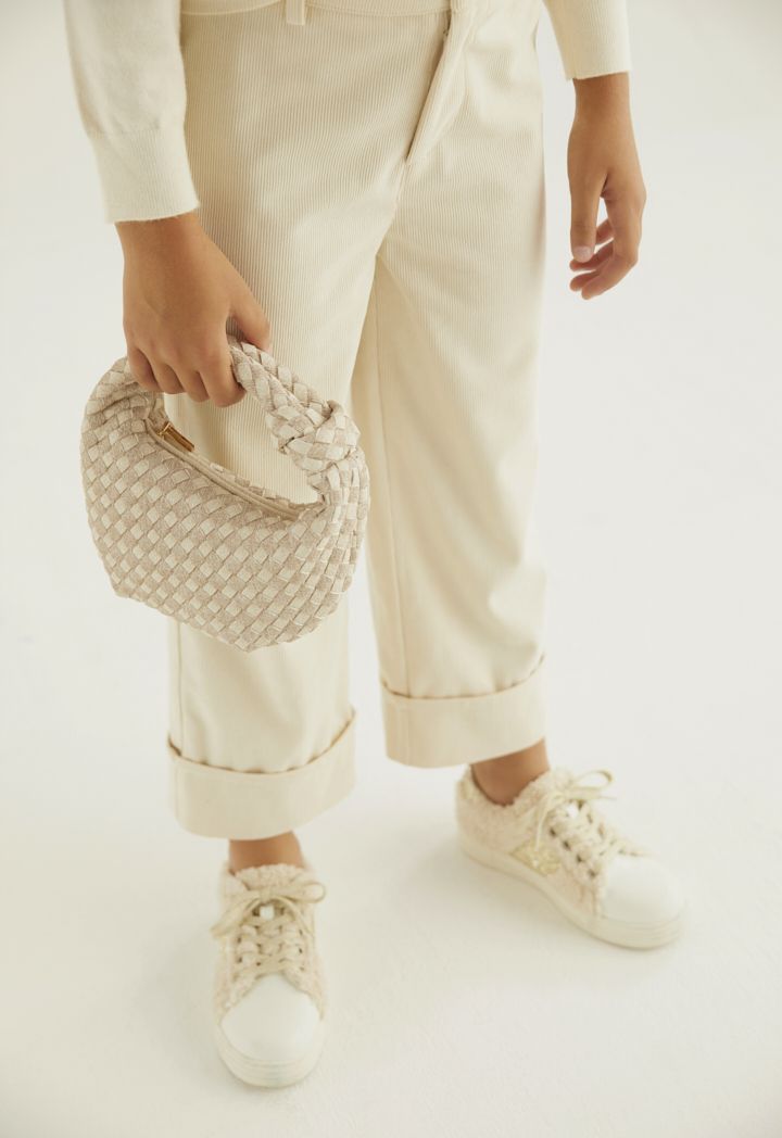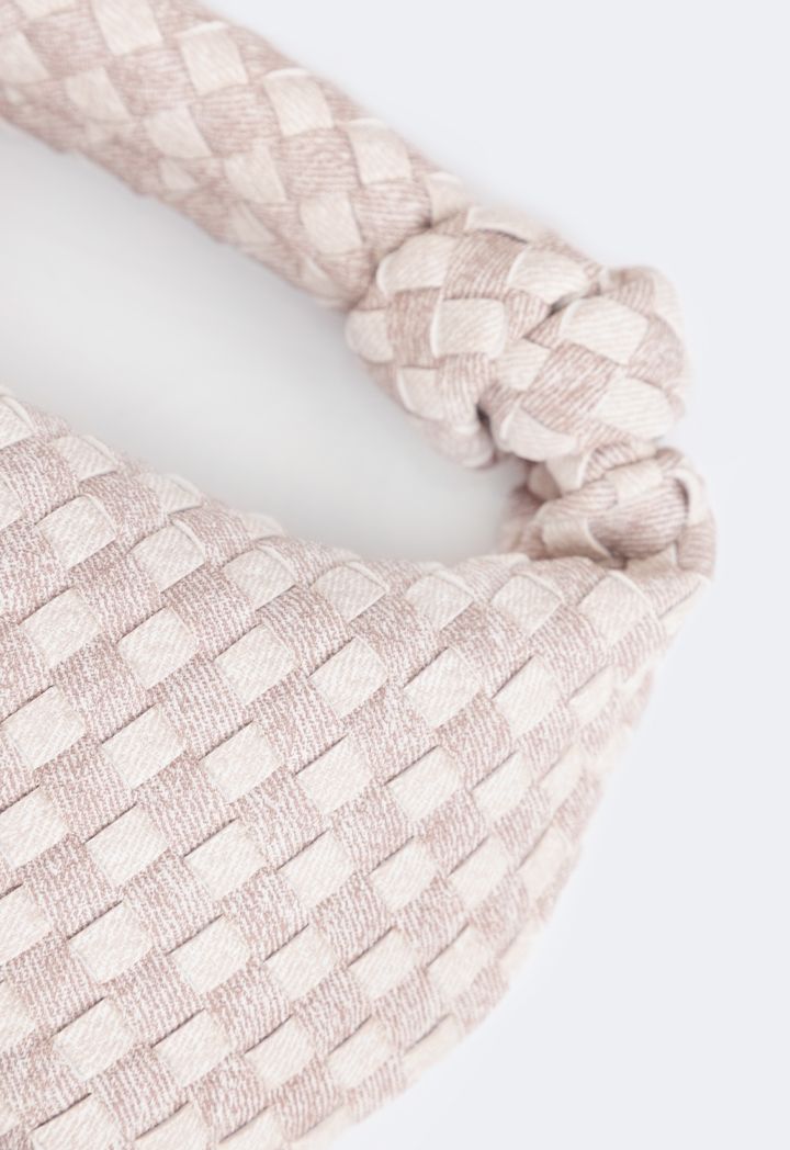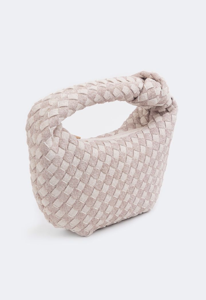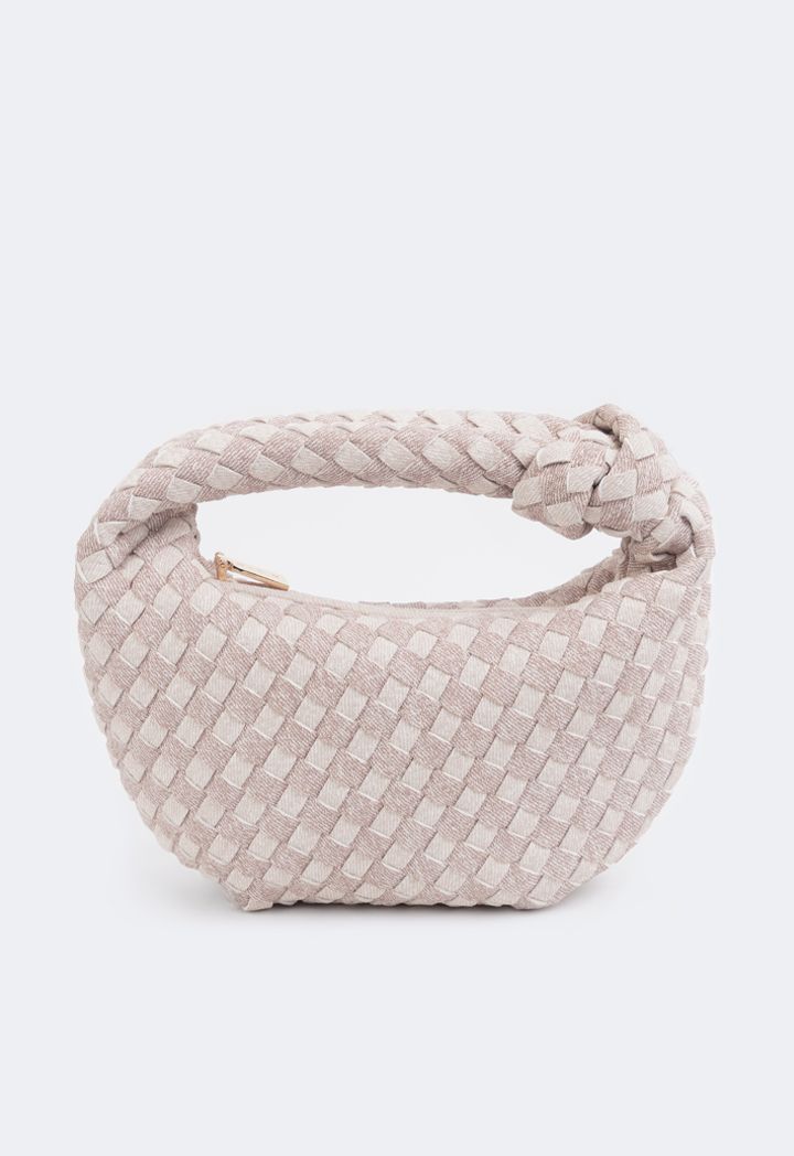 A woven mini clutch bag that is made an artistic touch with attention to the intricate details.