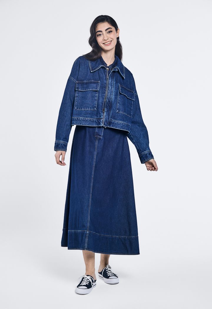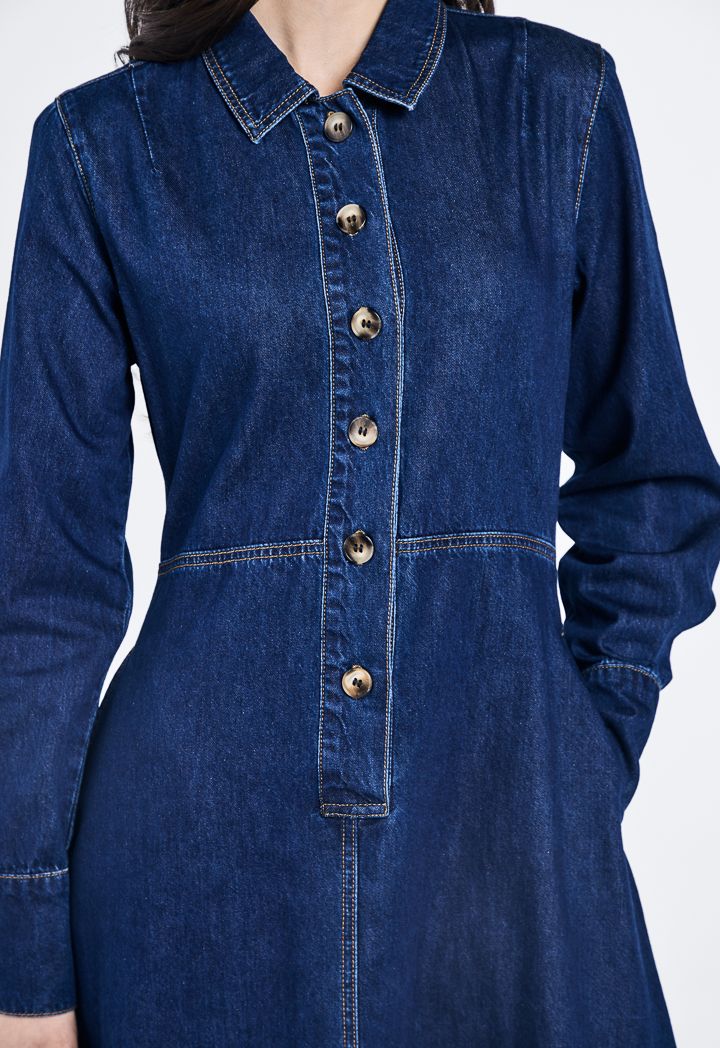 Denim Flared Maxi Dress |