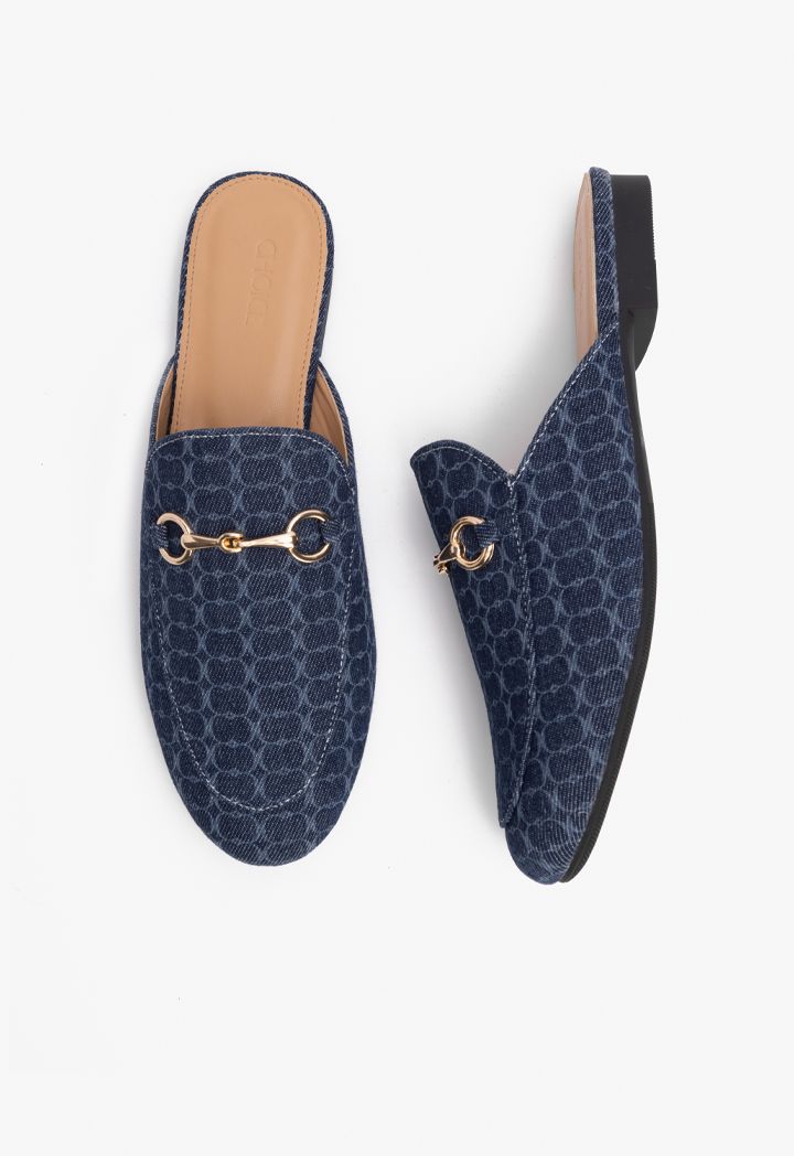 Denim Printed Monogram Mules |