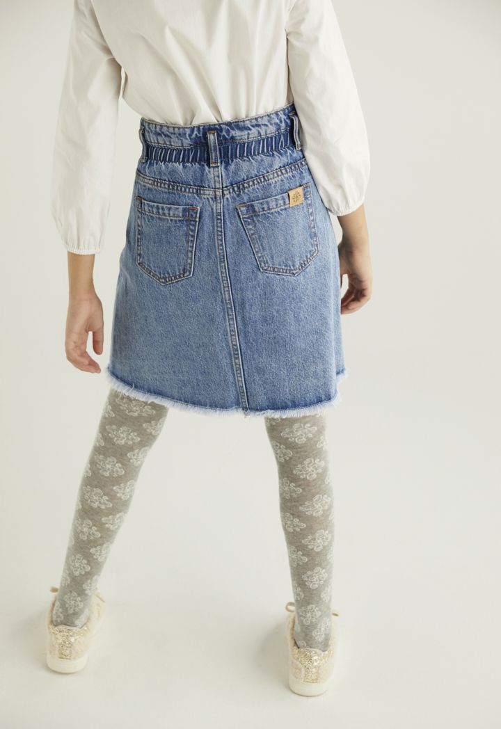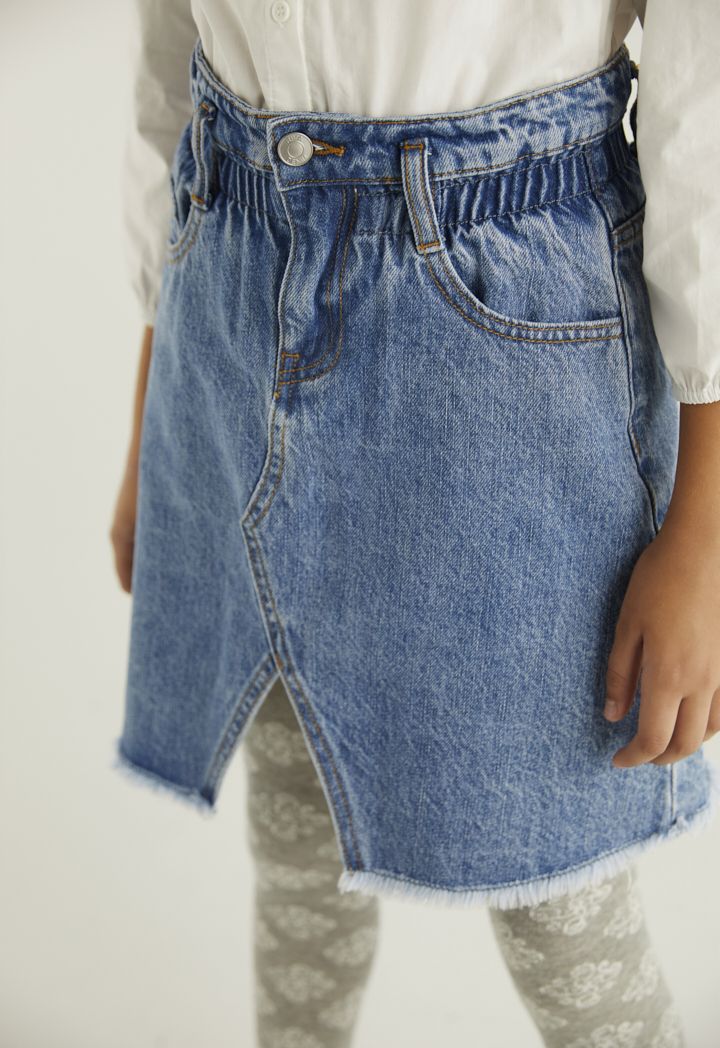 A cute yet stylish denim skirt that supports a fun twist of an elastic waist.