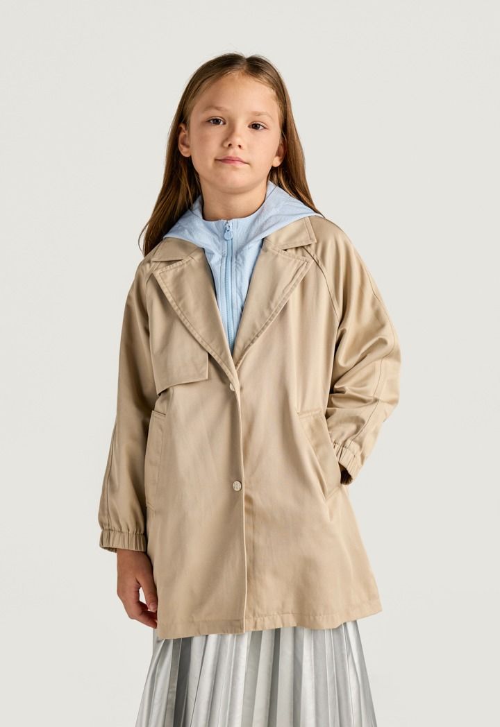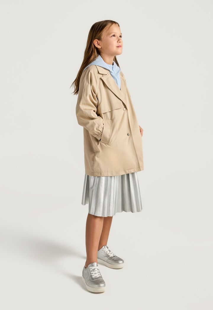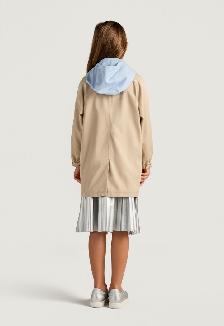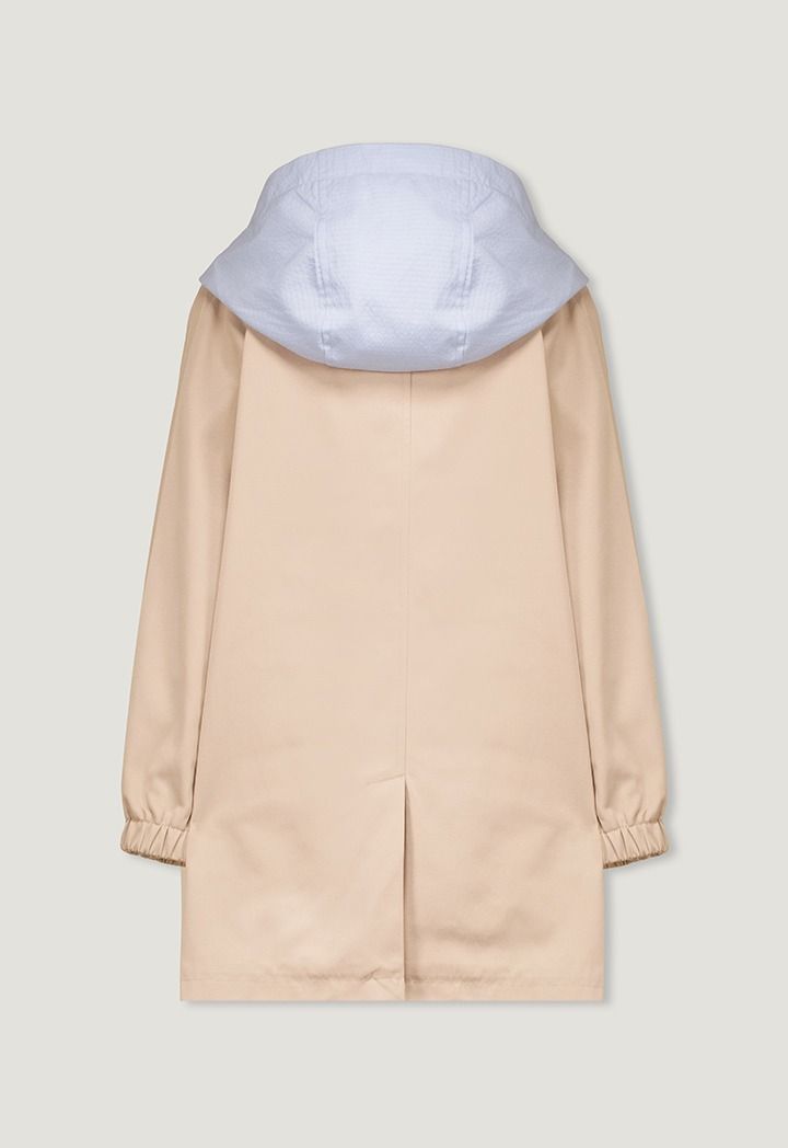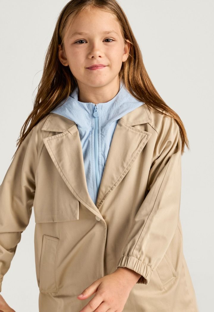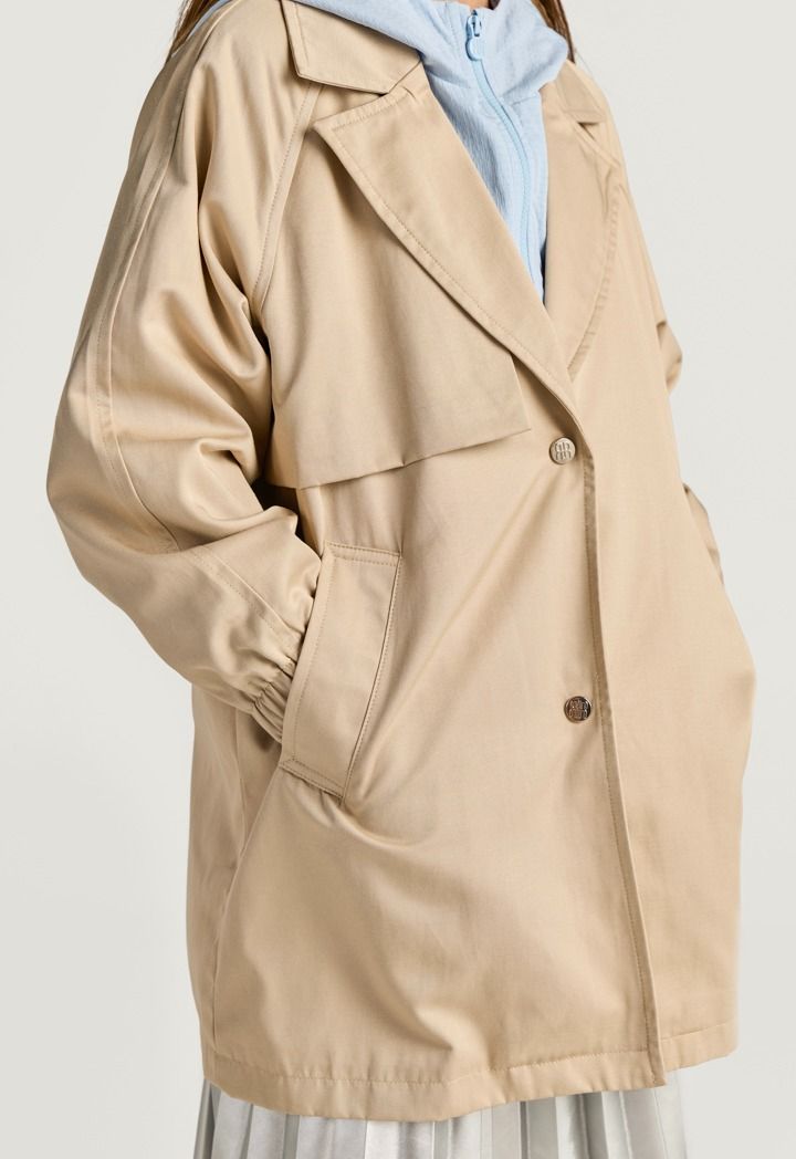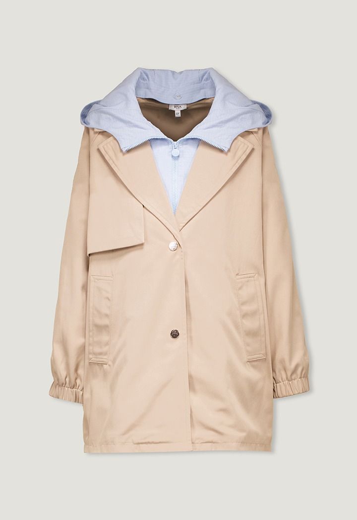 Contrast trench coat with a detachable inner layer, offering both a formal and sporty look.