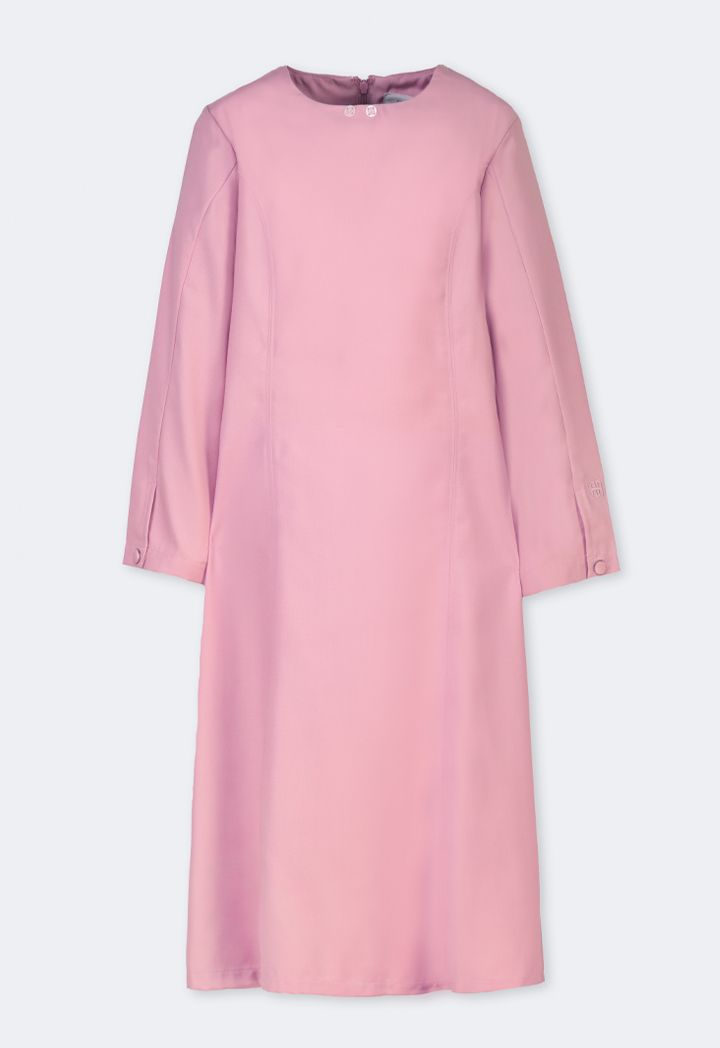 A solid school uniform dress that features a detachable wing collar, long sleeves and gingham checked touches.