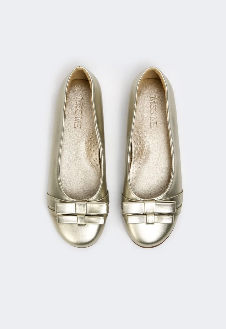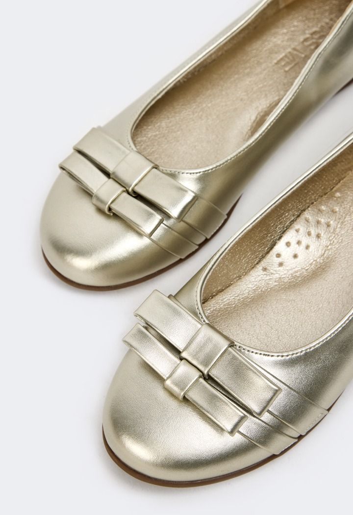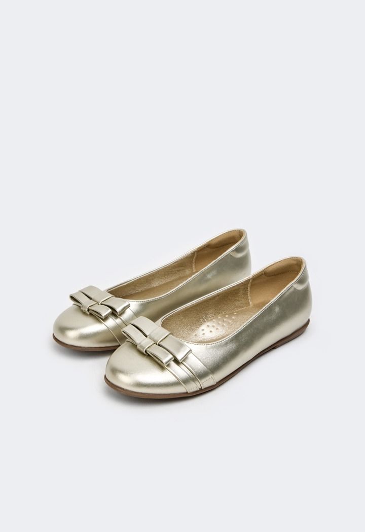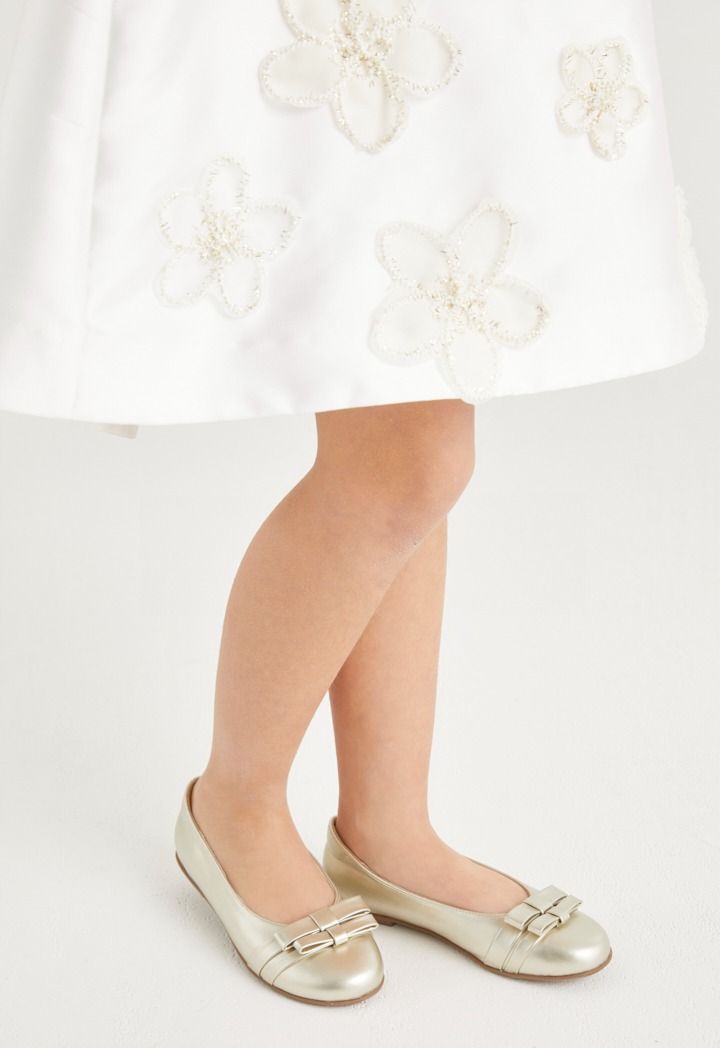 Expand your daughters collection of shoes with this pair of double bow embellished flat ballerinas.
