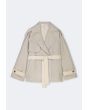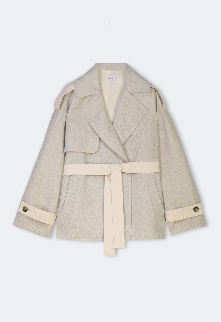 Design: Double Breasted, Belted, Side Pockets, Attached Lining