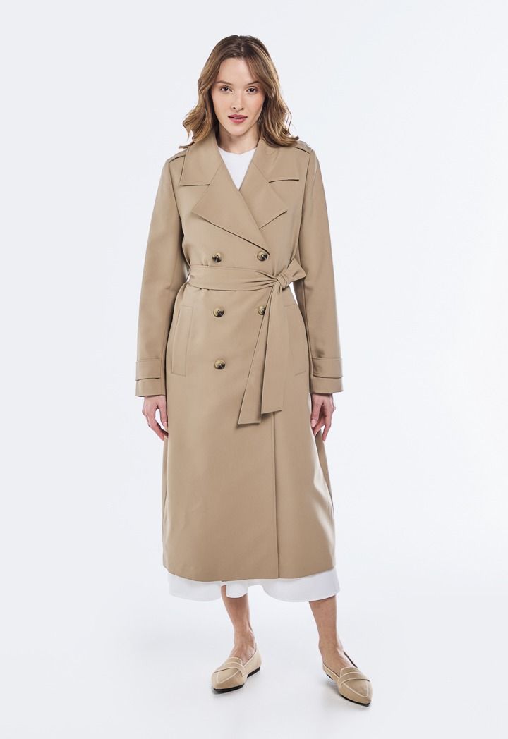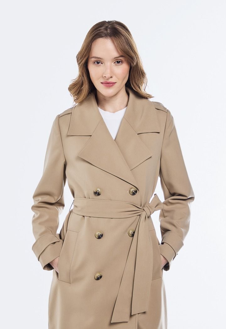Elevate your outerwear collection with this double-breasted trench coat. This timeless piece exudes effortless chic. the double-breasted closure add a modern twist to a classic design. Pair with sleek trousers and ankle boots for a sophisticated look.