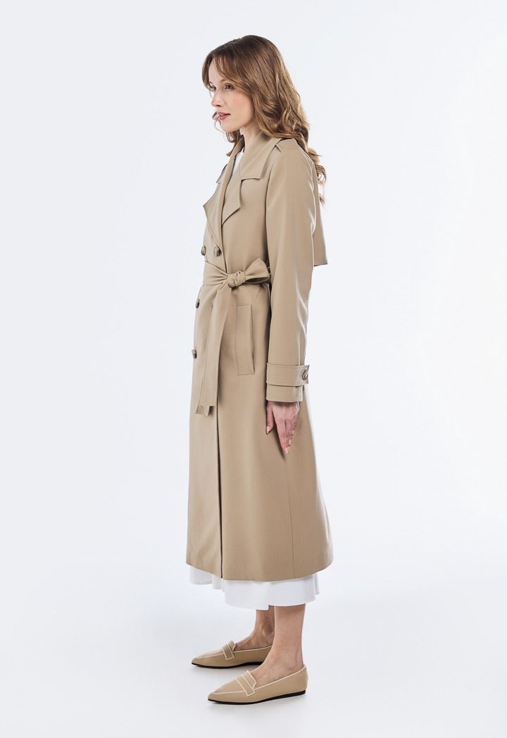 Design: Solid, Side Pockets, Double Breasted, Belted, Attached Lining, Back Slit