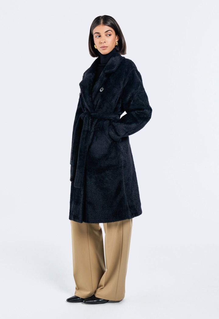 Design: Solid, Faux Fur, Belted, Pockets