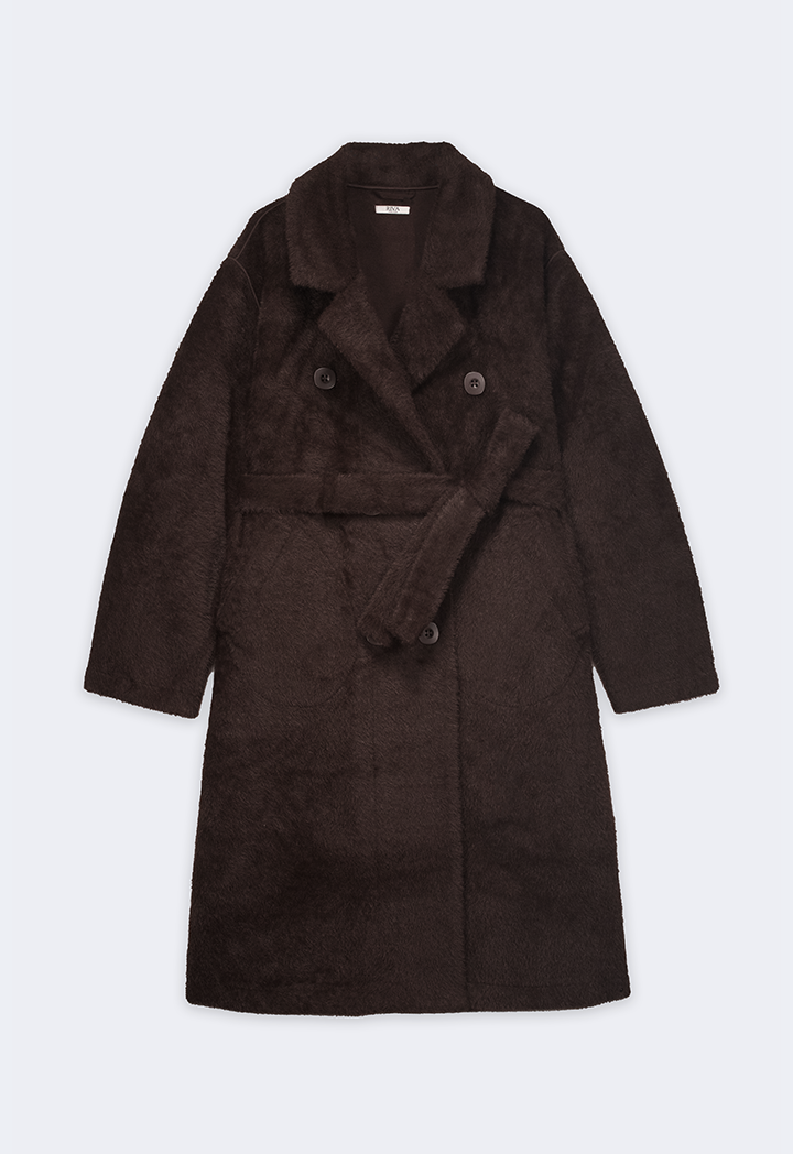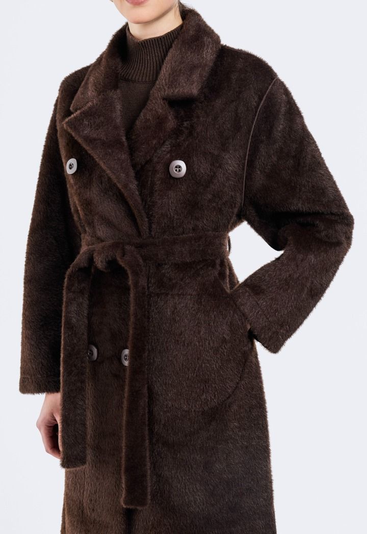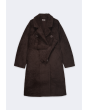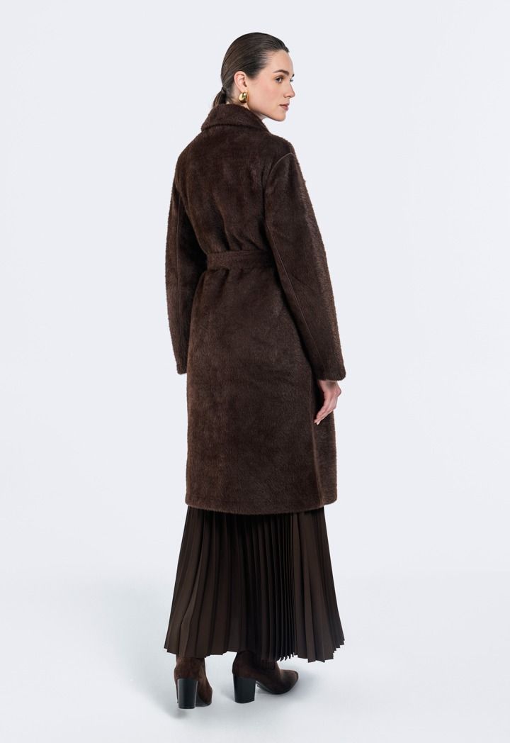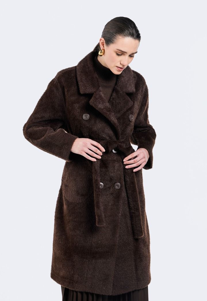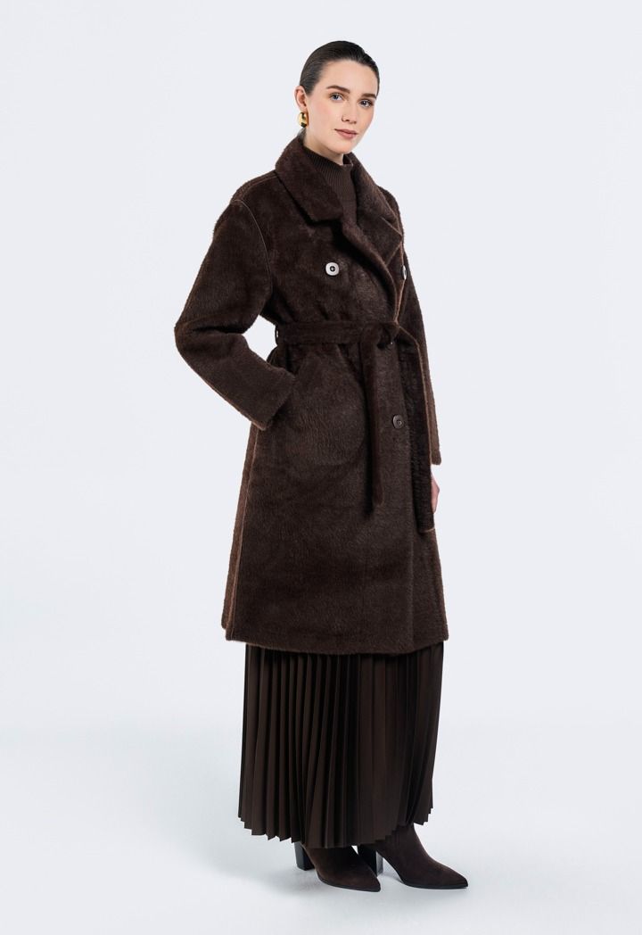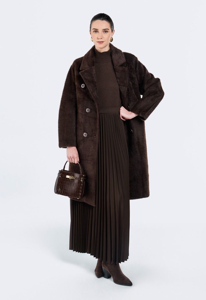 A modern classic coat, featuring a solid faux fur double breasted design.