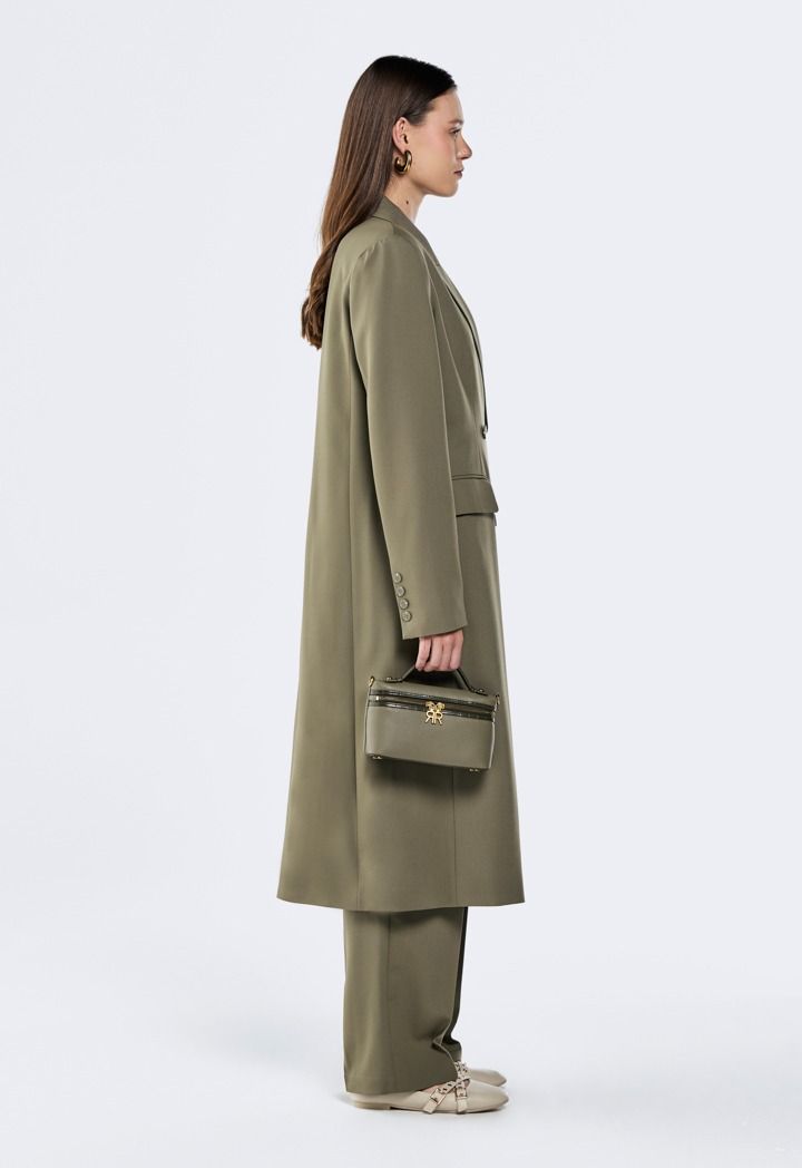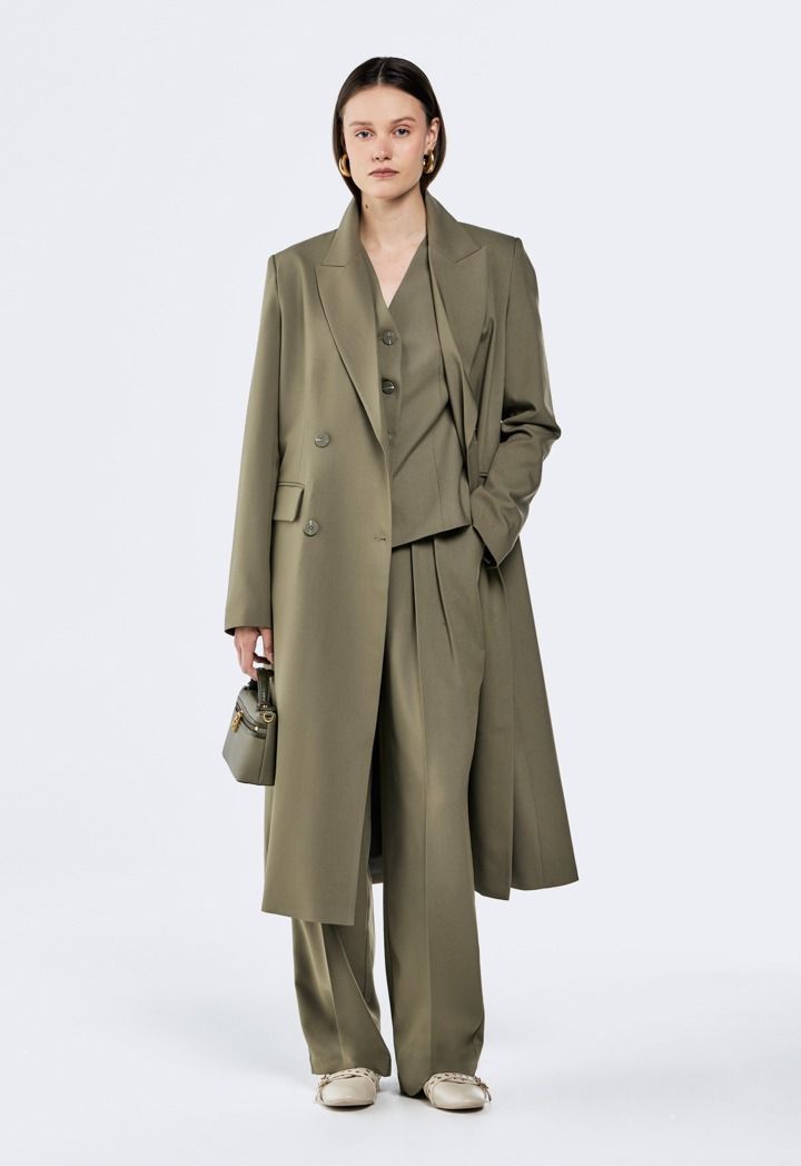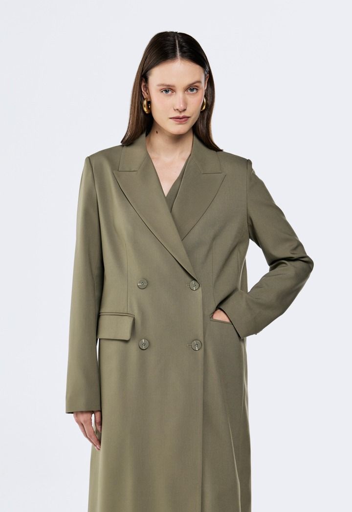 Design : Solid, Attached Lining, Double Breasted, Flap Pockets