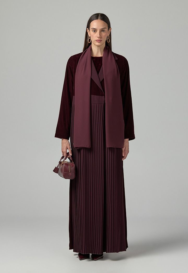 Design: Solid, Velvet, Pleated, Double Breasted, Flared, Hijab