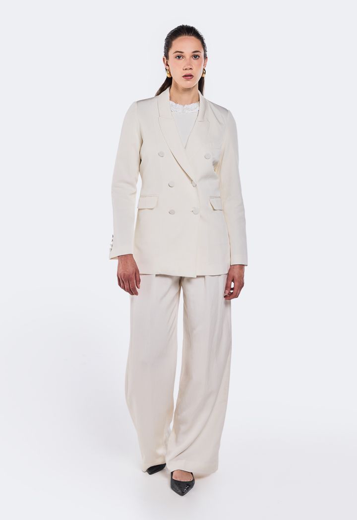 Design : Solid, Faux Pocket, Flap Pockets, Back Slit, Attached Lining, Double Breasted