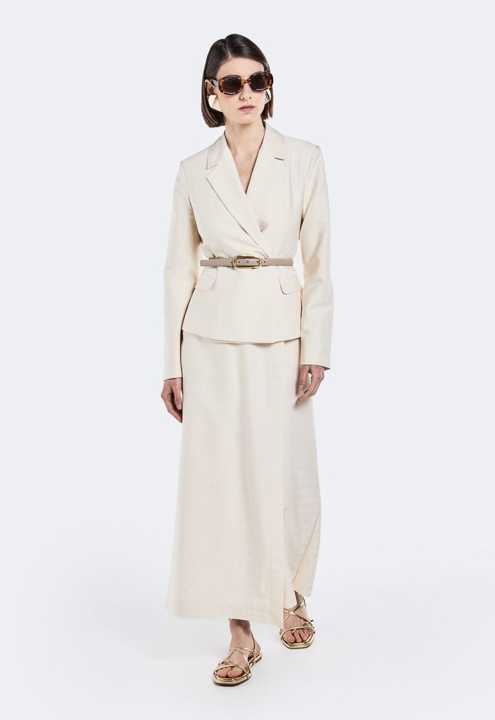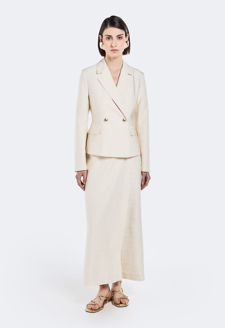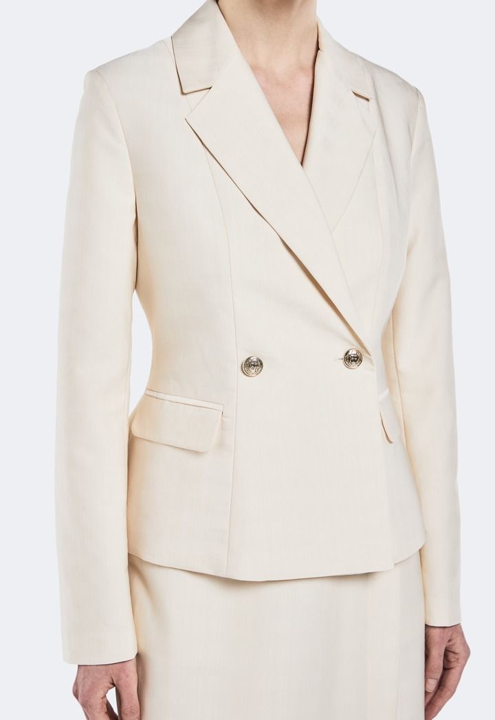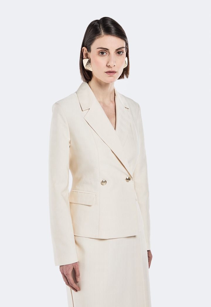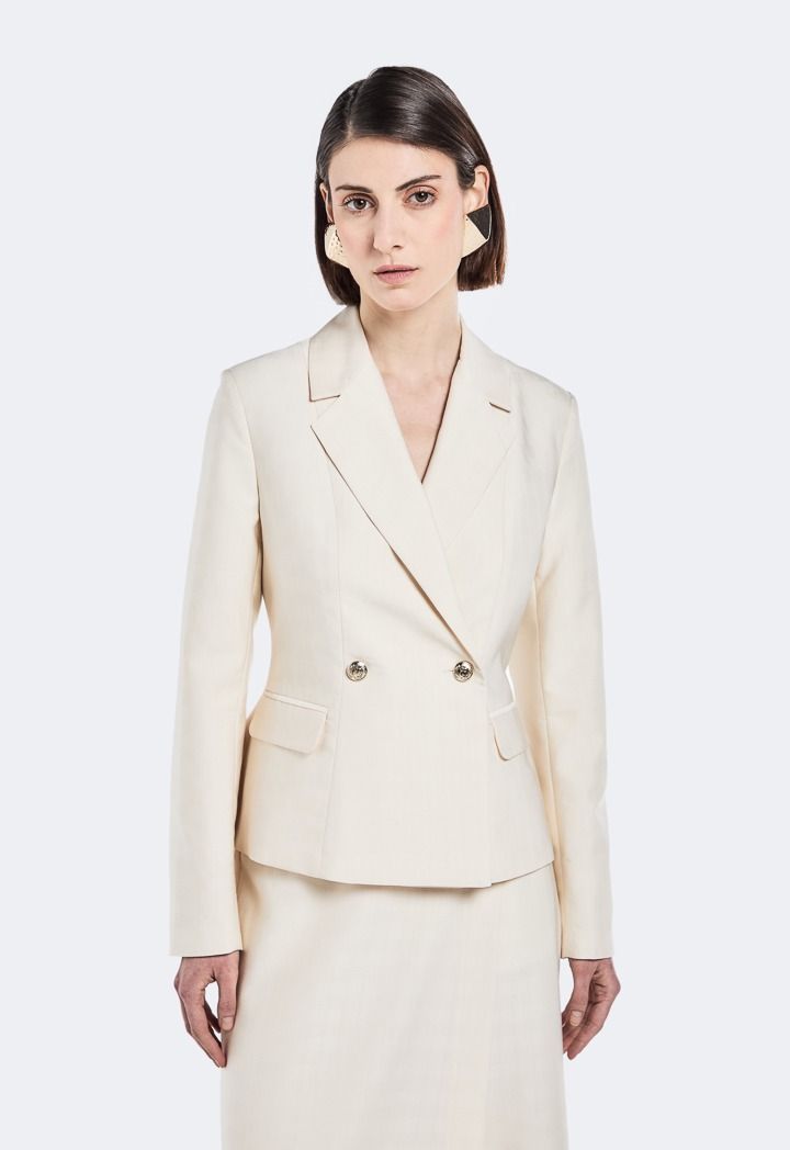 Design: Striped, Double Breasted, Flap Pockets, Attached Lining