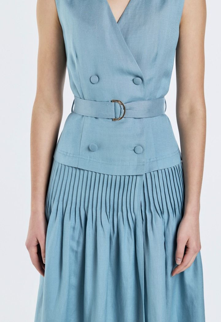 Double Breasted Pleated Dress