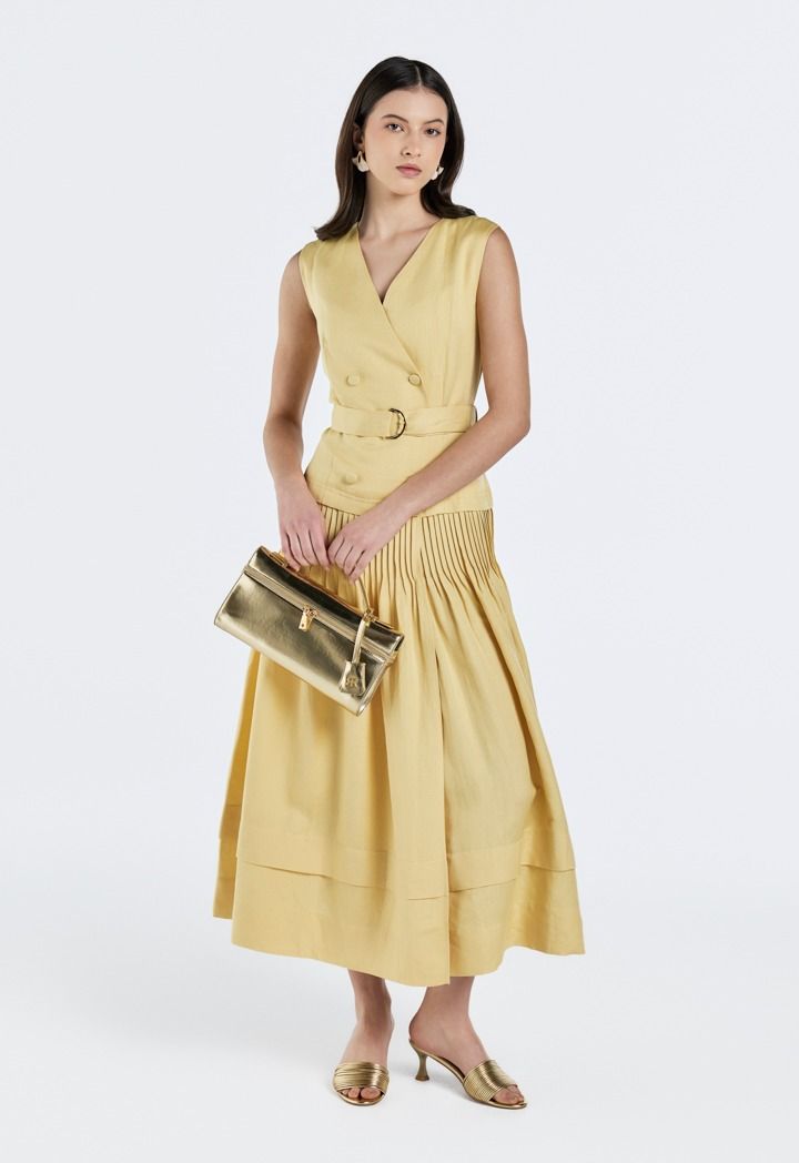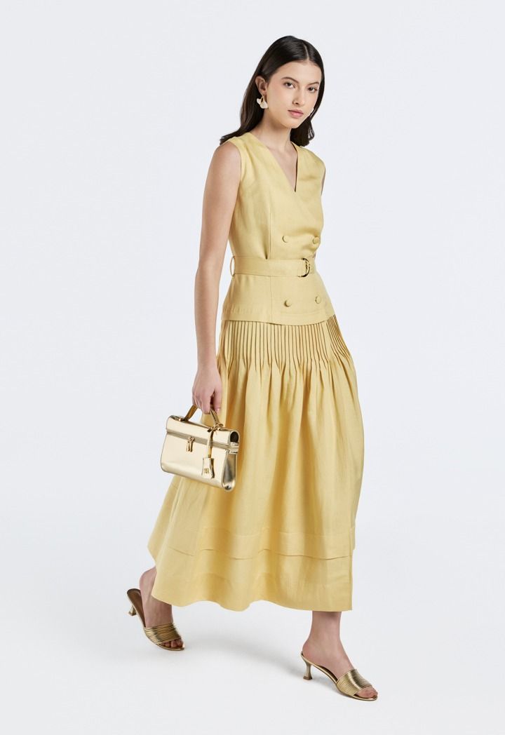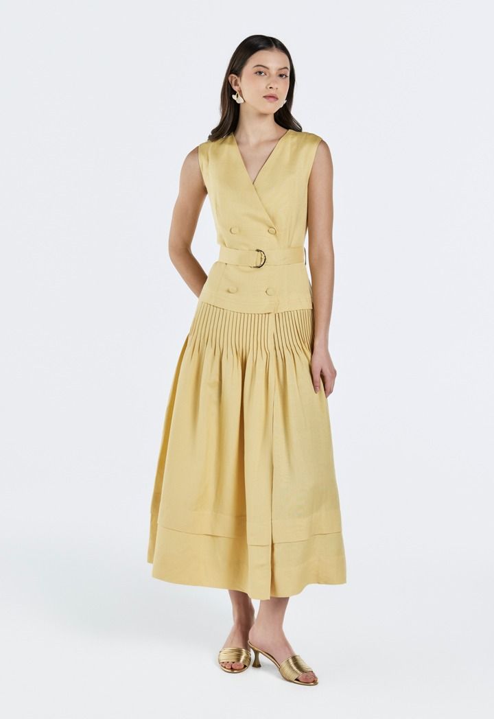 Double Breasted Pleated Dress |