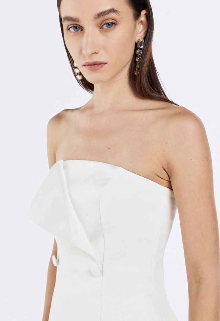 Refined charm with Double Breasted Strapless Top is where elegance meets allure.