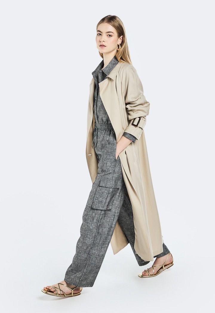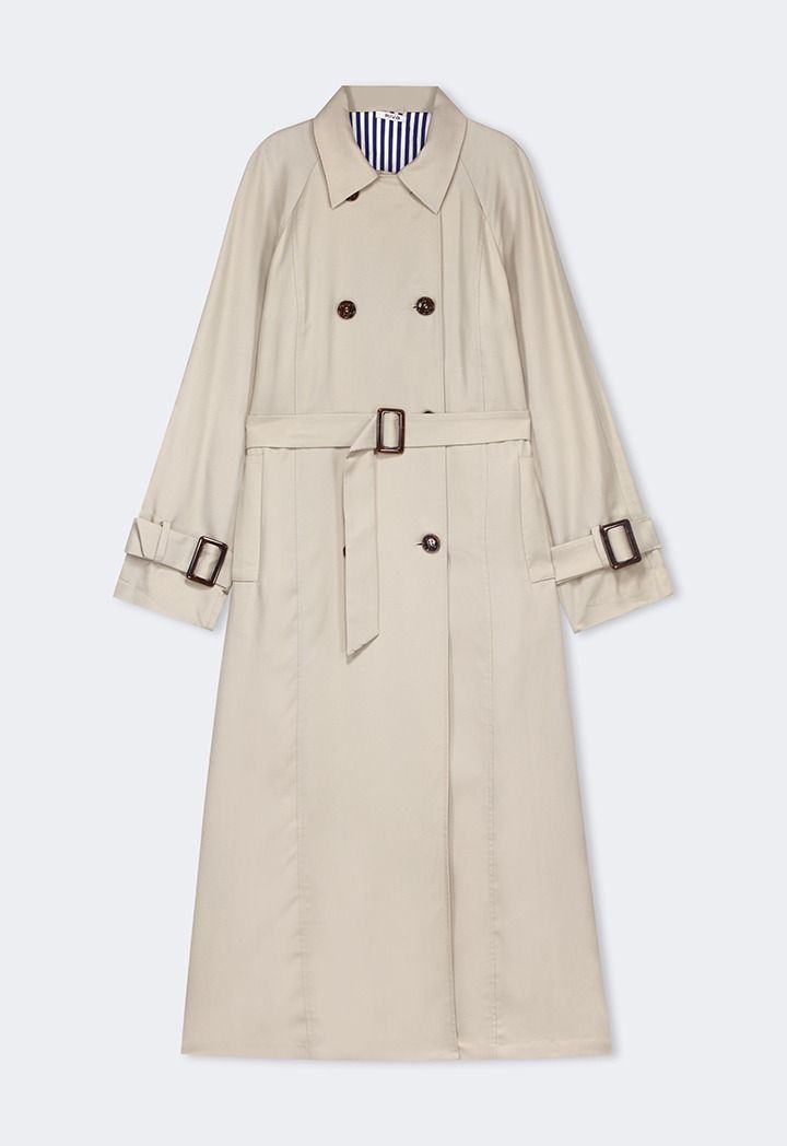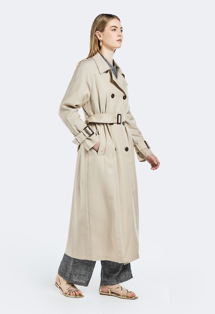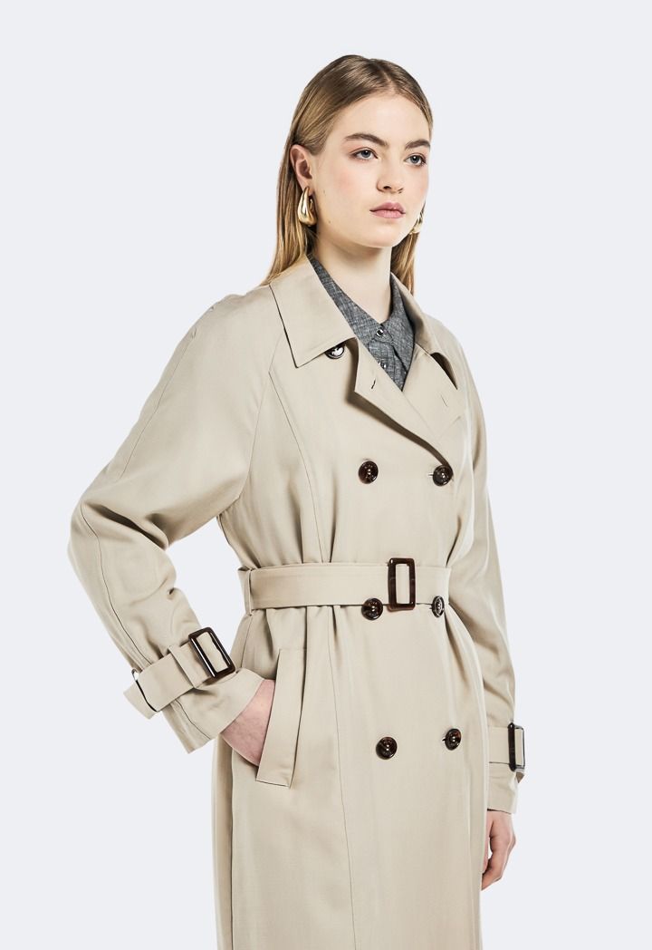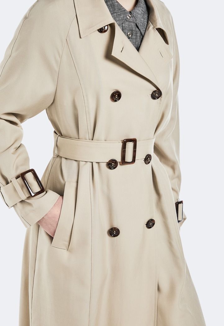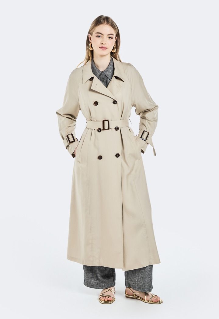 Elevate your outerwear collection with this double-breasted trench coat. This timeless piece exudes effortless chic. Pair with sleek trousers and ankle boots for a sophisticated look.