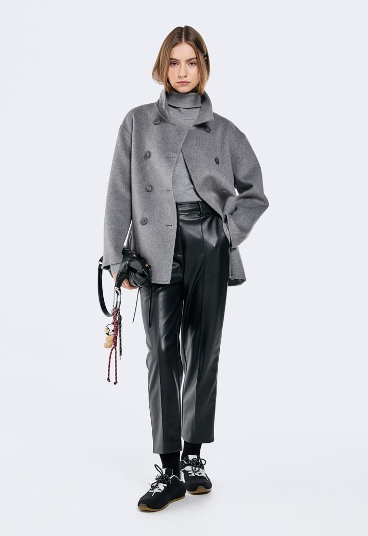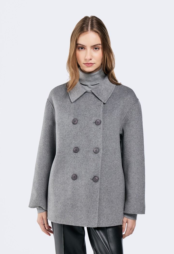 Timeless sophistication, this double-breasted wool coat is your ultimate cold-weather essential.