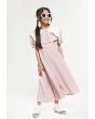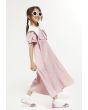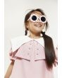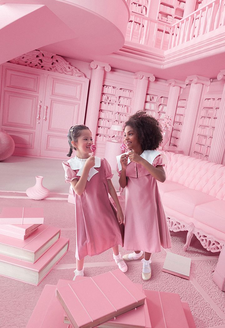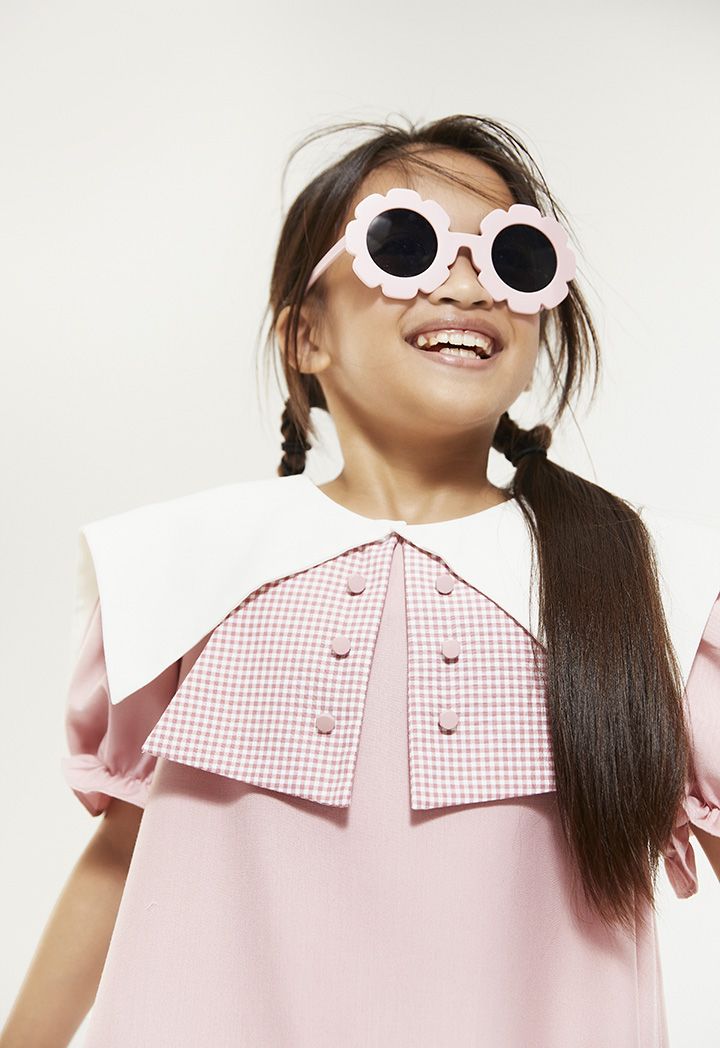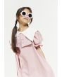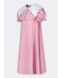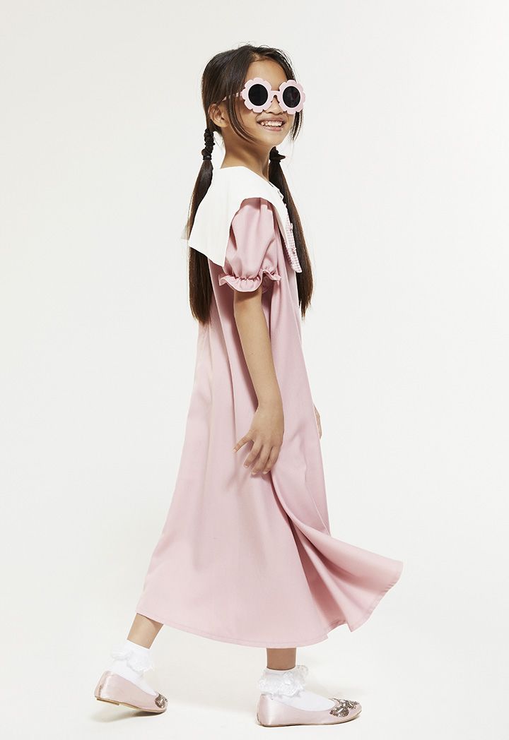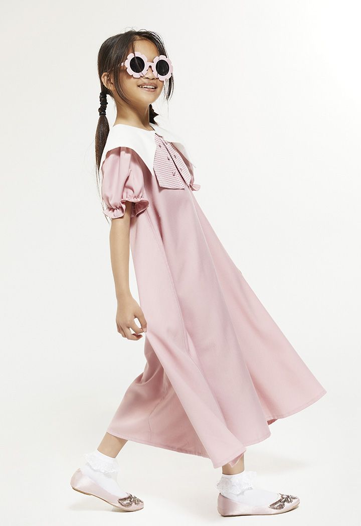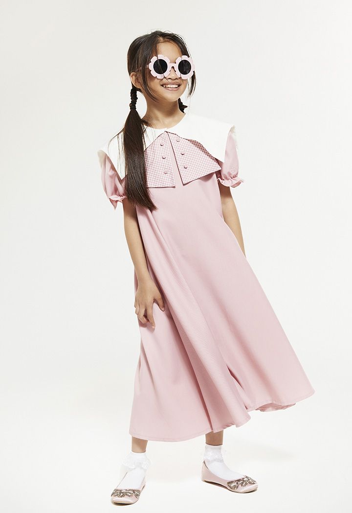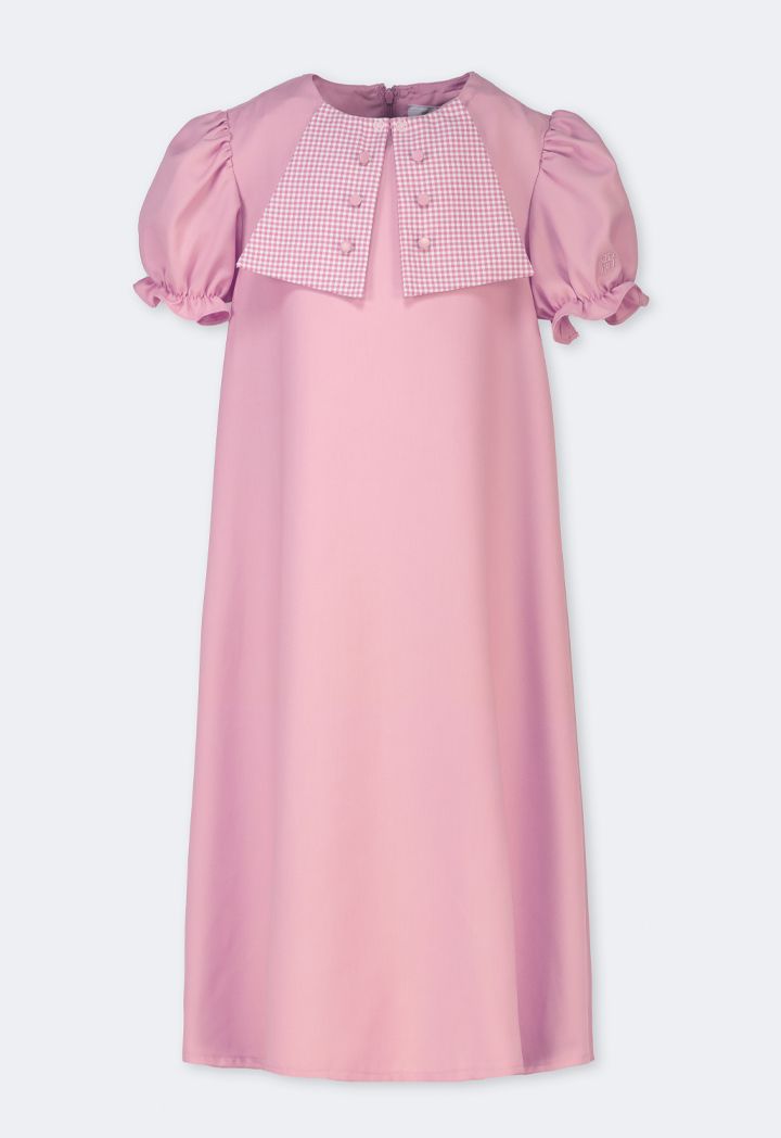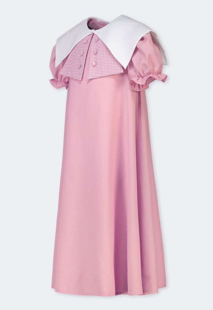 An elegant school uniform dress that features a detachable double collar and short sleeves.