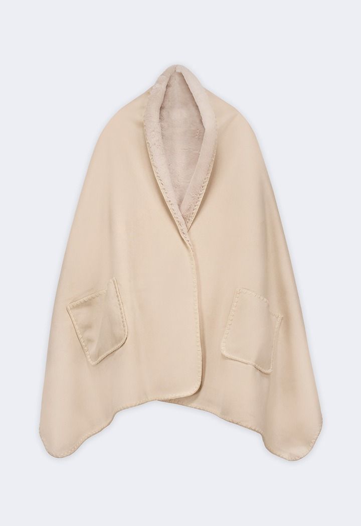 A versatile winter shawl that features a double face fleece design with stitches design.