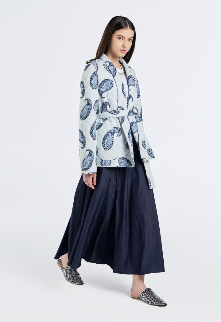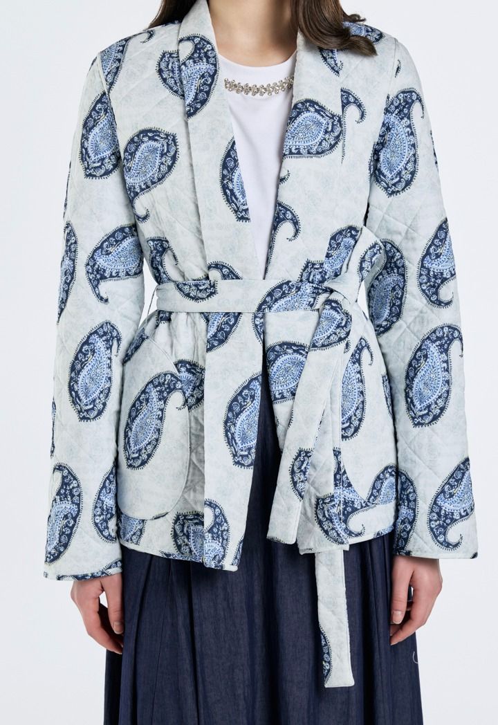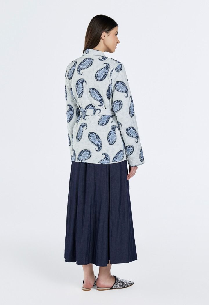Design: Paisley Print, Belted, Double-Faced, Side Pockets