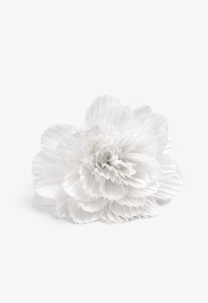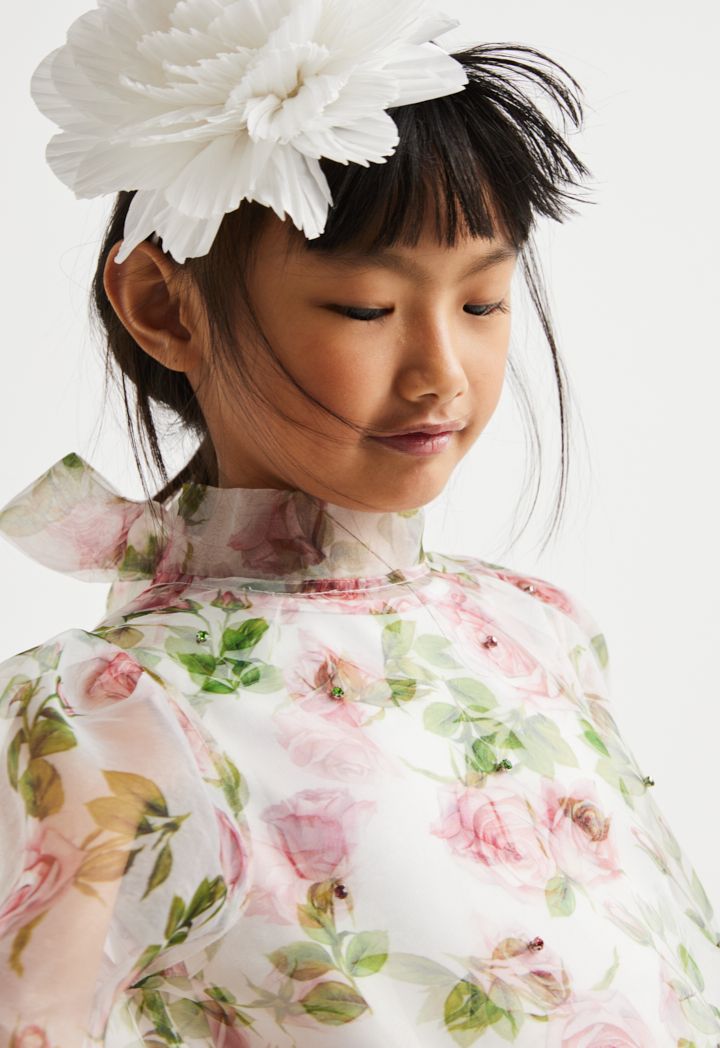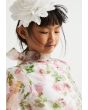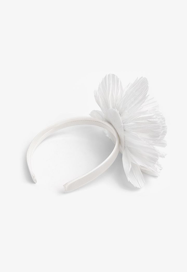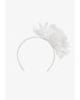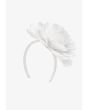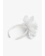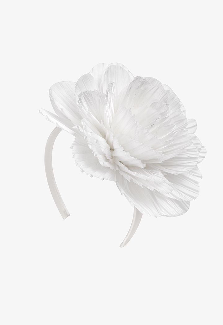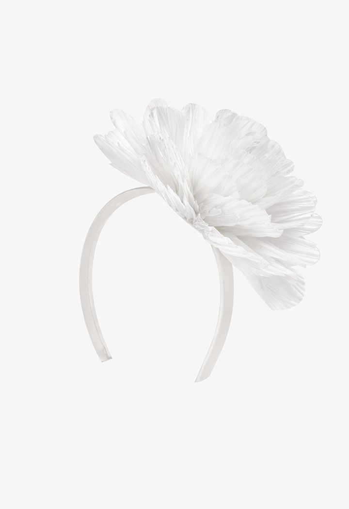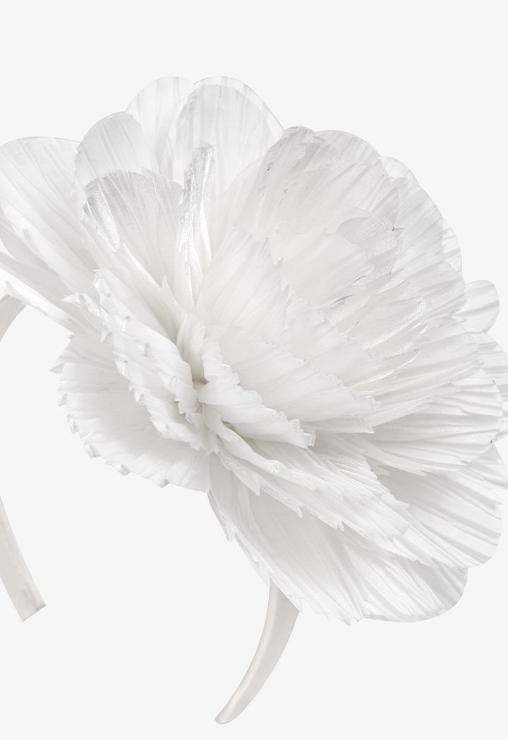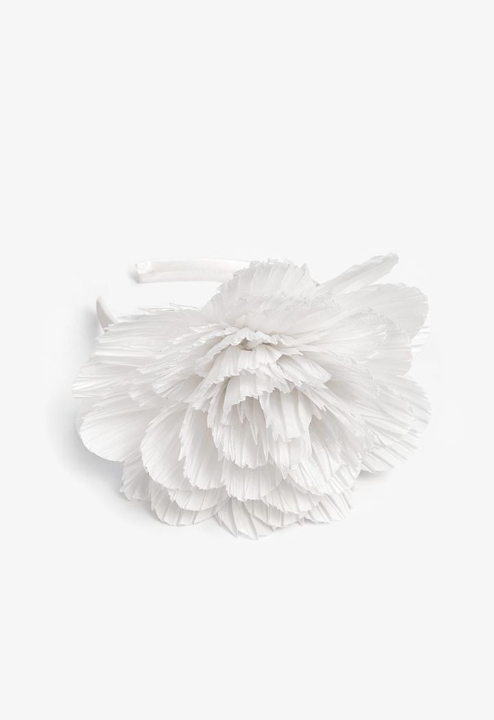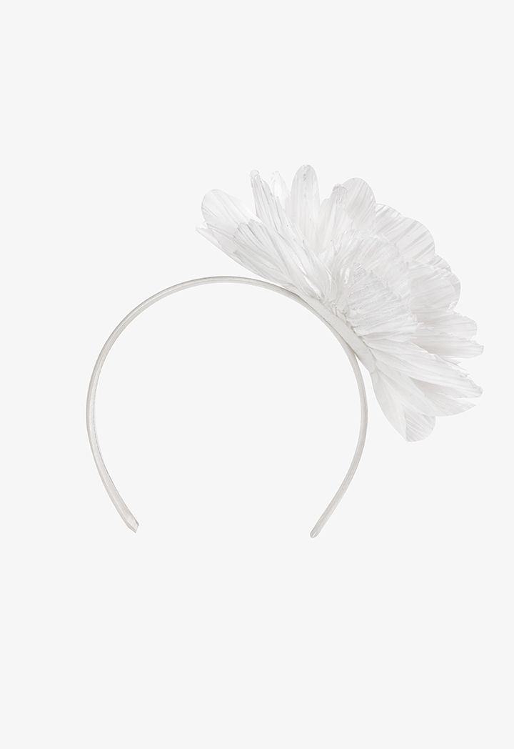 A true and unique design with a headband covered completely with flower petals displaying a true image of the spring look.