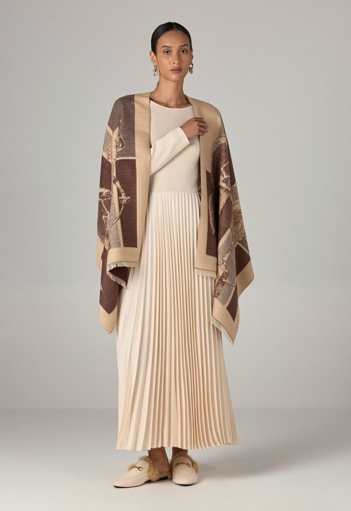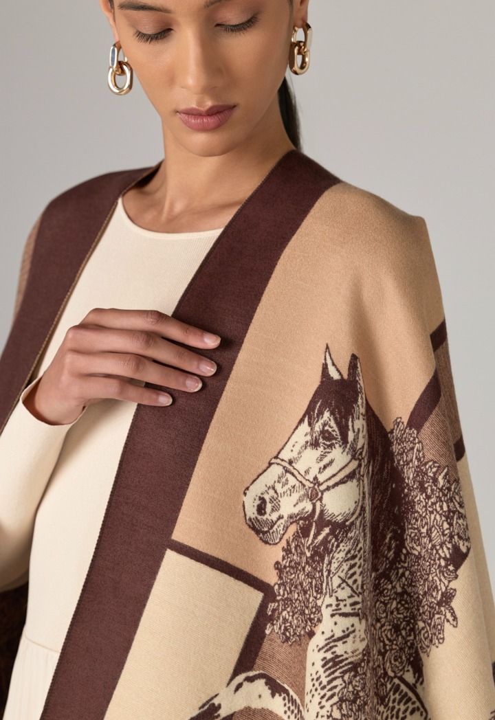This horse print pashmina scarf is easy to style and pairs beautifully with many of your winter looks.