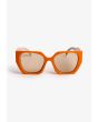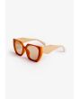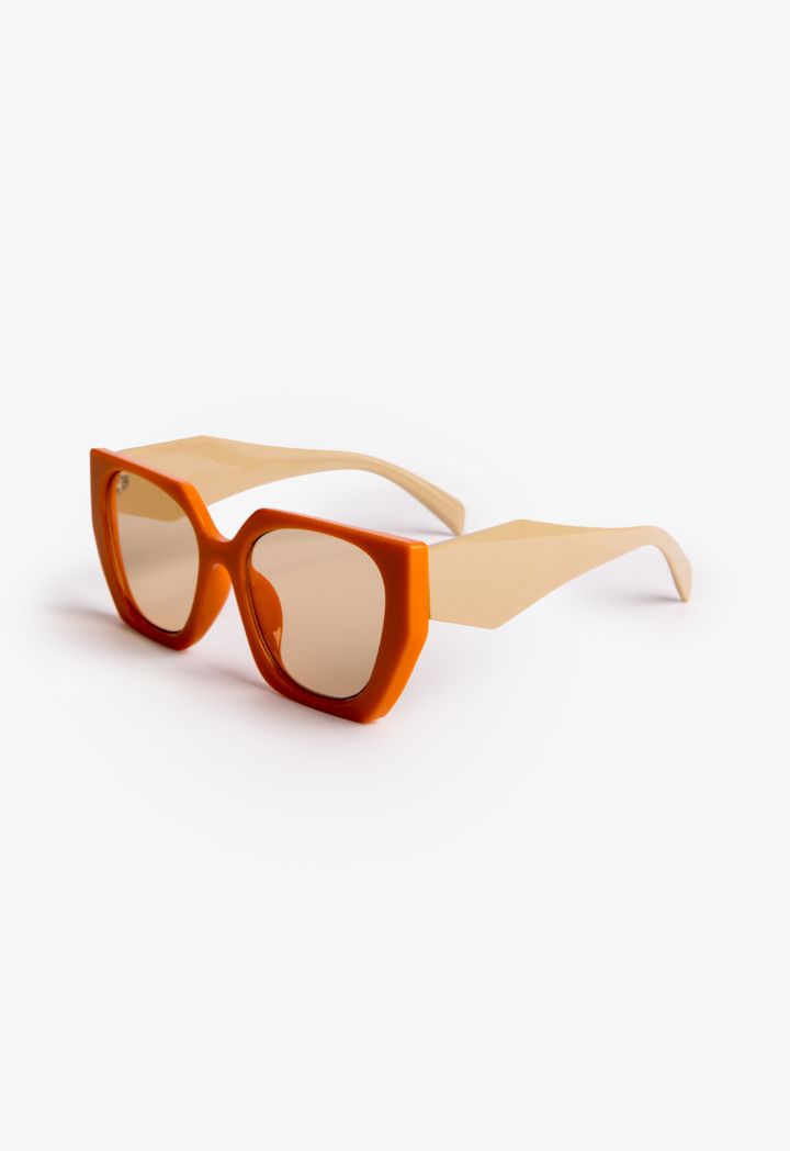 Riva's new eyewear collection illustrates a fresh and glamorous take on a classic summer essential., featuring an elegant cat-eye frame, this pair is fitted with tinted lenses and comfortable temples.