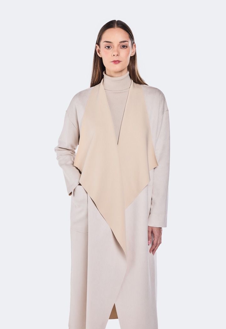 Design: Solid, Velvet, Drop Shoulder, Draped Front. Patch Pockets
