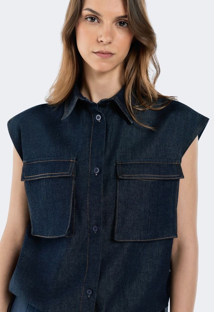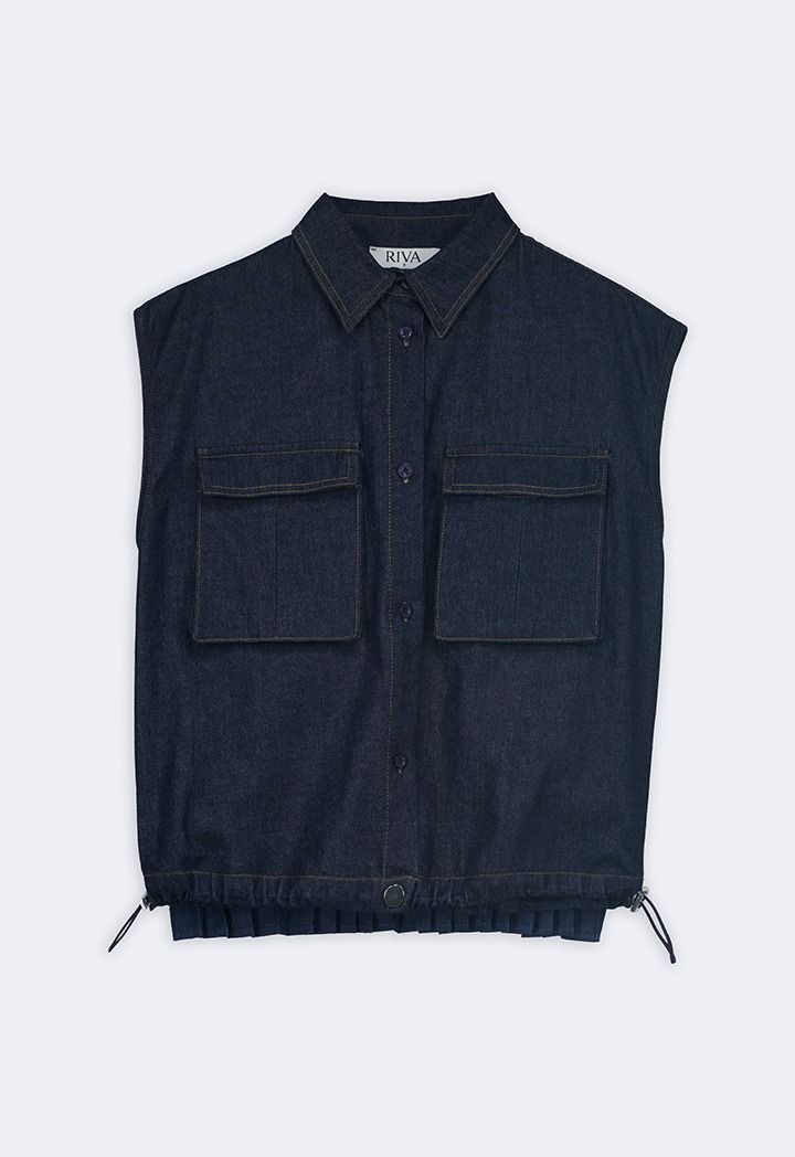 Drawstring Hem Denim Vest |
