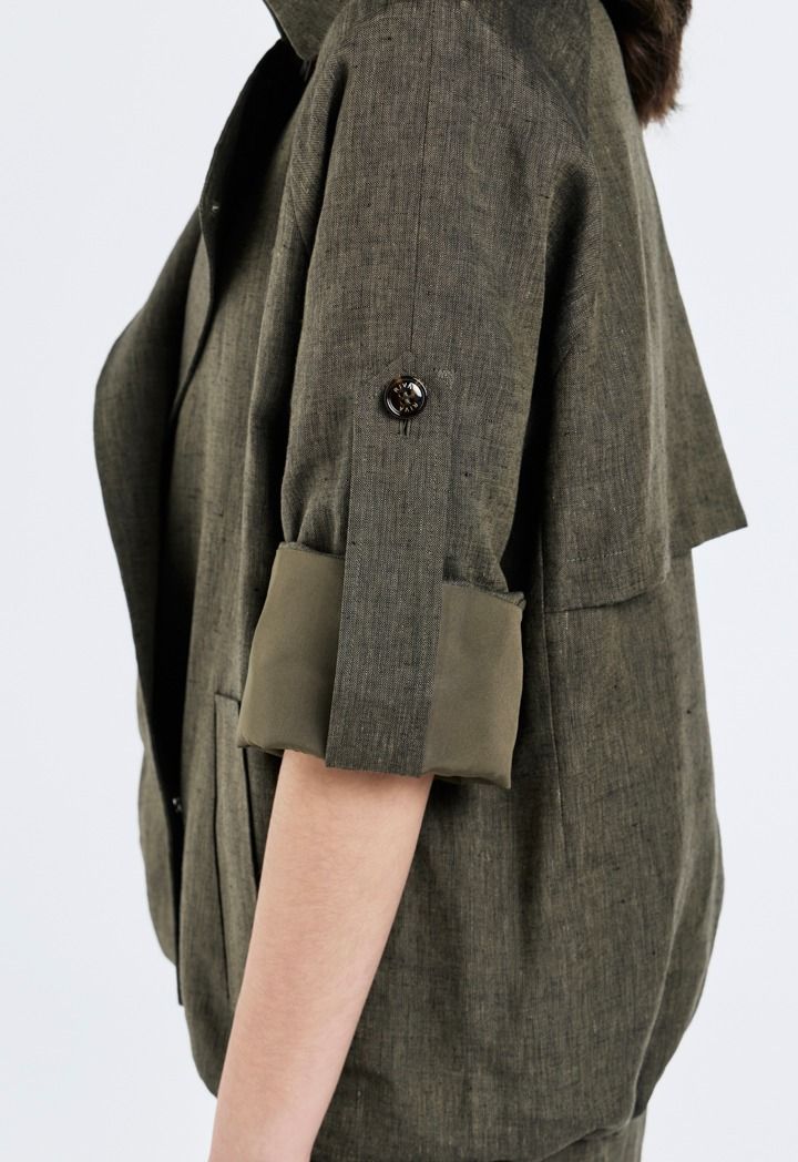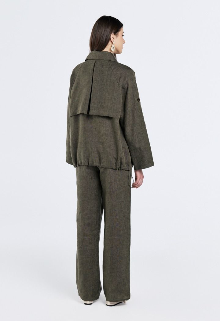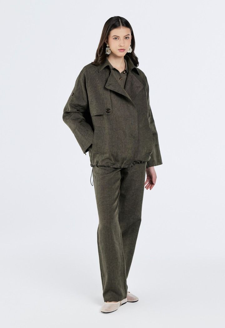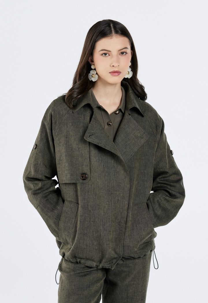 Chic and casual, the drawstring hem jacket combines practical design with sleek style.