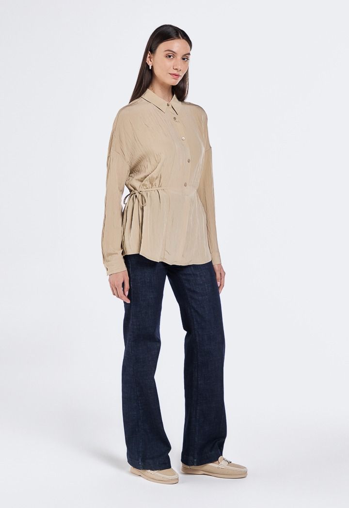 Design: Solid, Crinkled, Drawstring Waist Details, Drop Shoulders