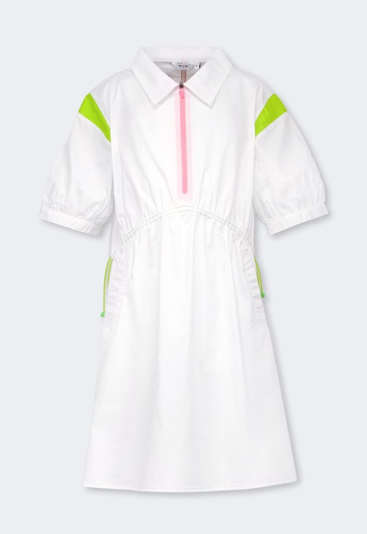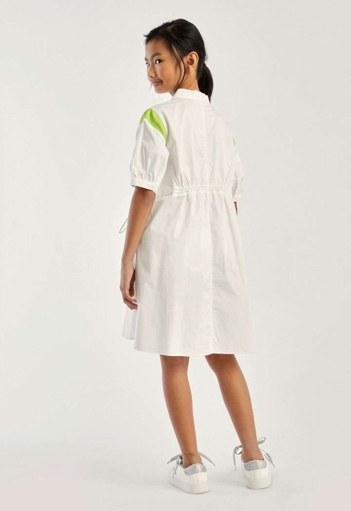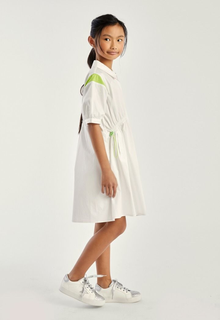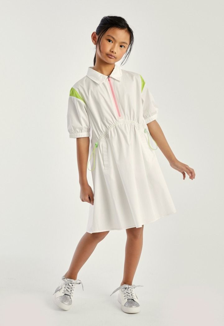 Designed with a drawstring waist and Front zipper, this Knee Length Dress will lend a sophisticated style to your young girl.