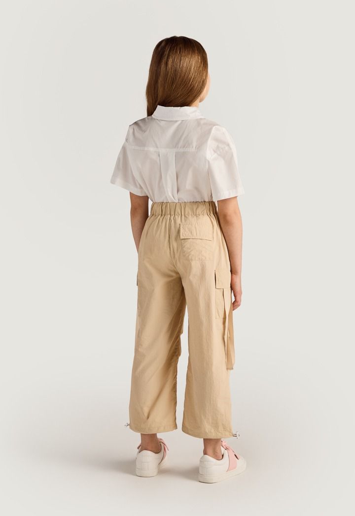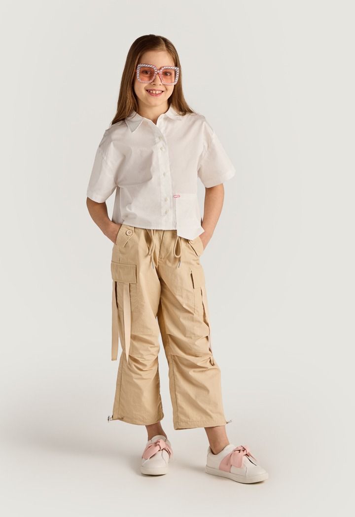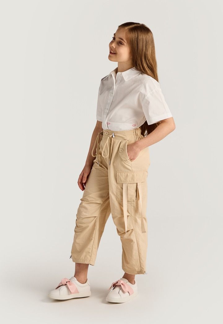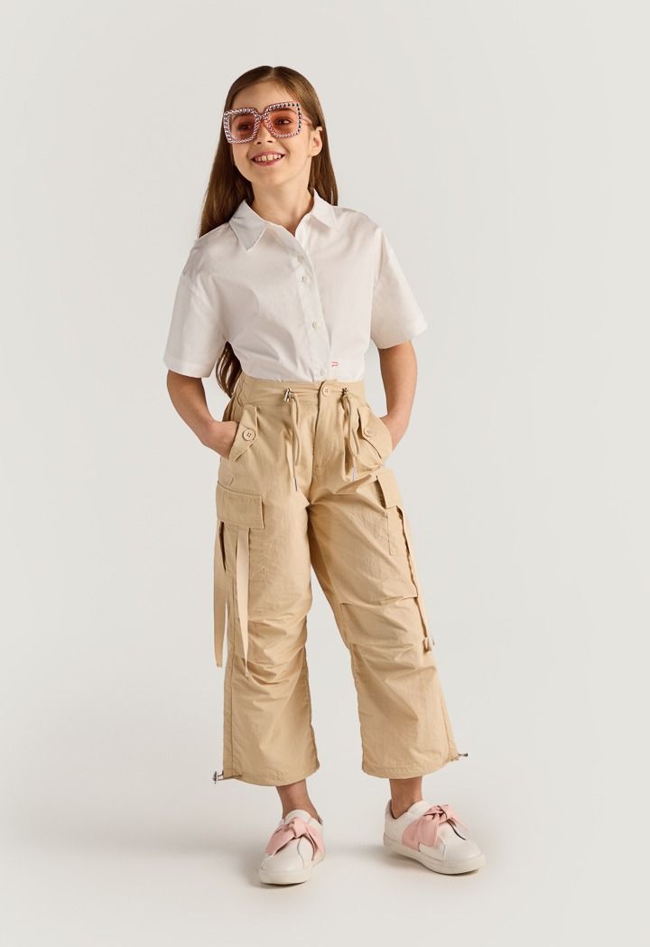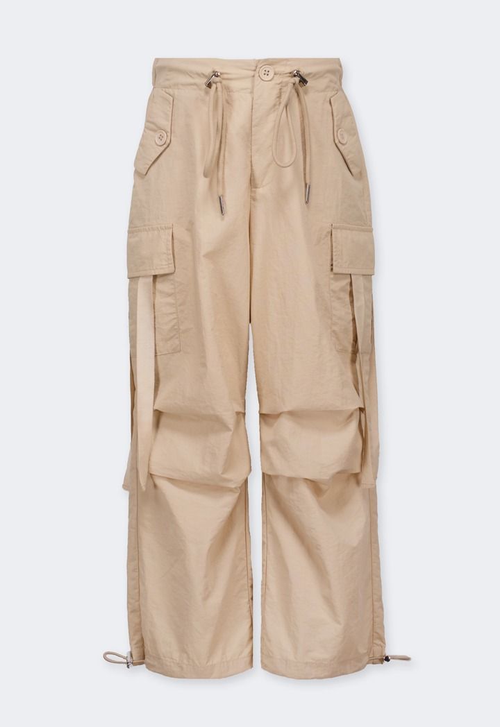 A Modern Pair Of Cargo Pants Featuring Drawstrings Hems.